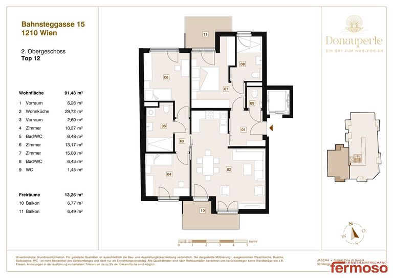 Wohnfläche: ca. 92,42m² Freifläche: ca. 13,26 m² Balkon