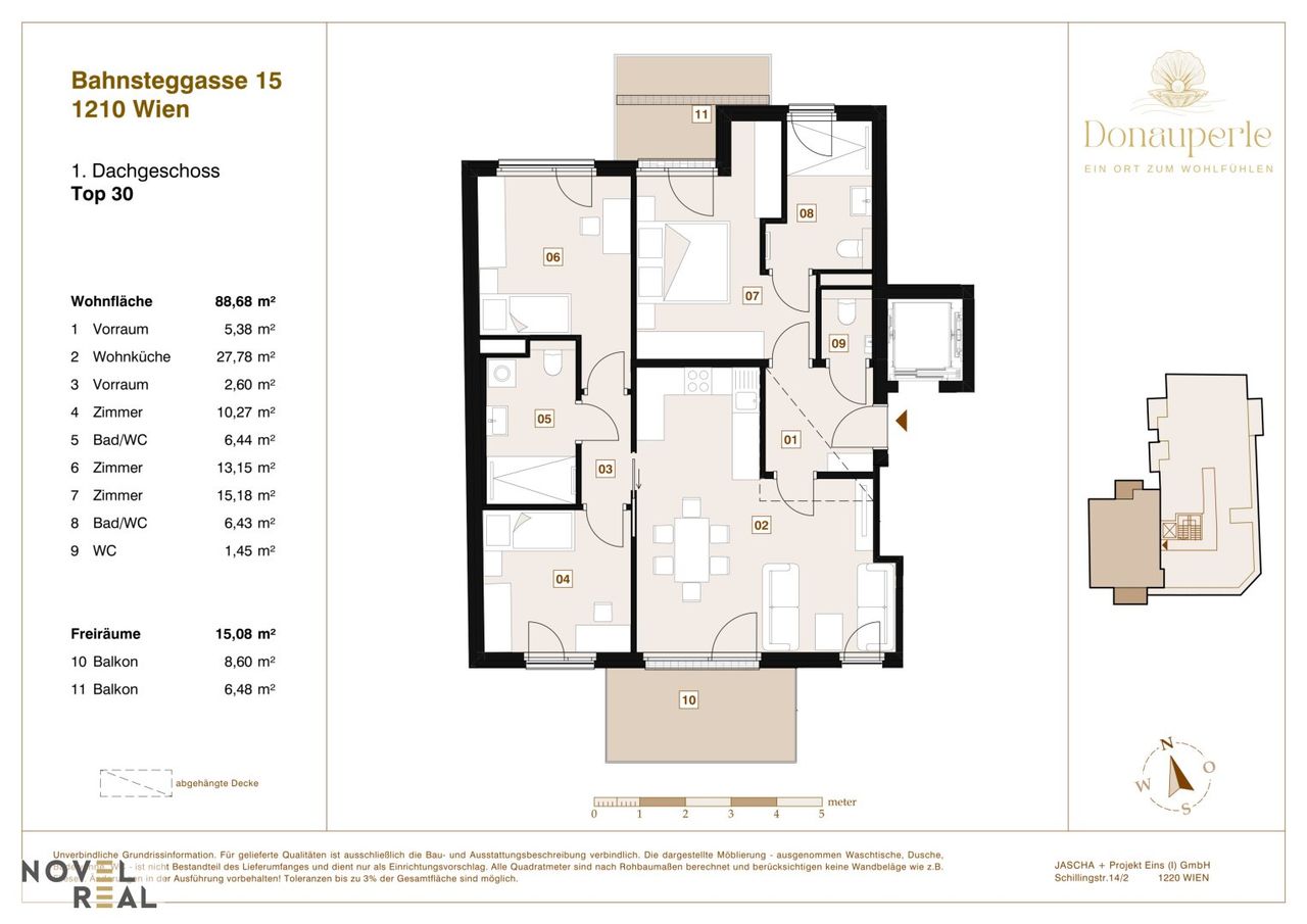 Das Vermittlungshonorar ist ausschließlich bei Zustandekommen eines gültigen Rechtsgeschäfts fällig und vom Käufer an Novel Real Immobilien GmbH zu zahlen. Es wird ausdrücklich auf die Nebenkostenübersicht hingewiesen. Bei den Visualisierungen und Abbildungen der Immobilie (insbesondere von Inneneinrichtungen) kann es sich um Symbolfotos bzw. fototechnisch optimierte Fotos handeln.