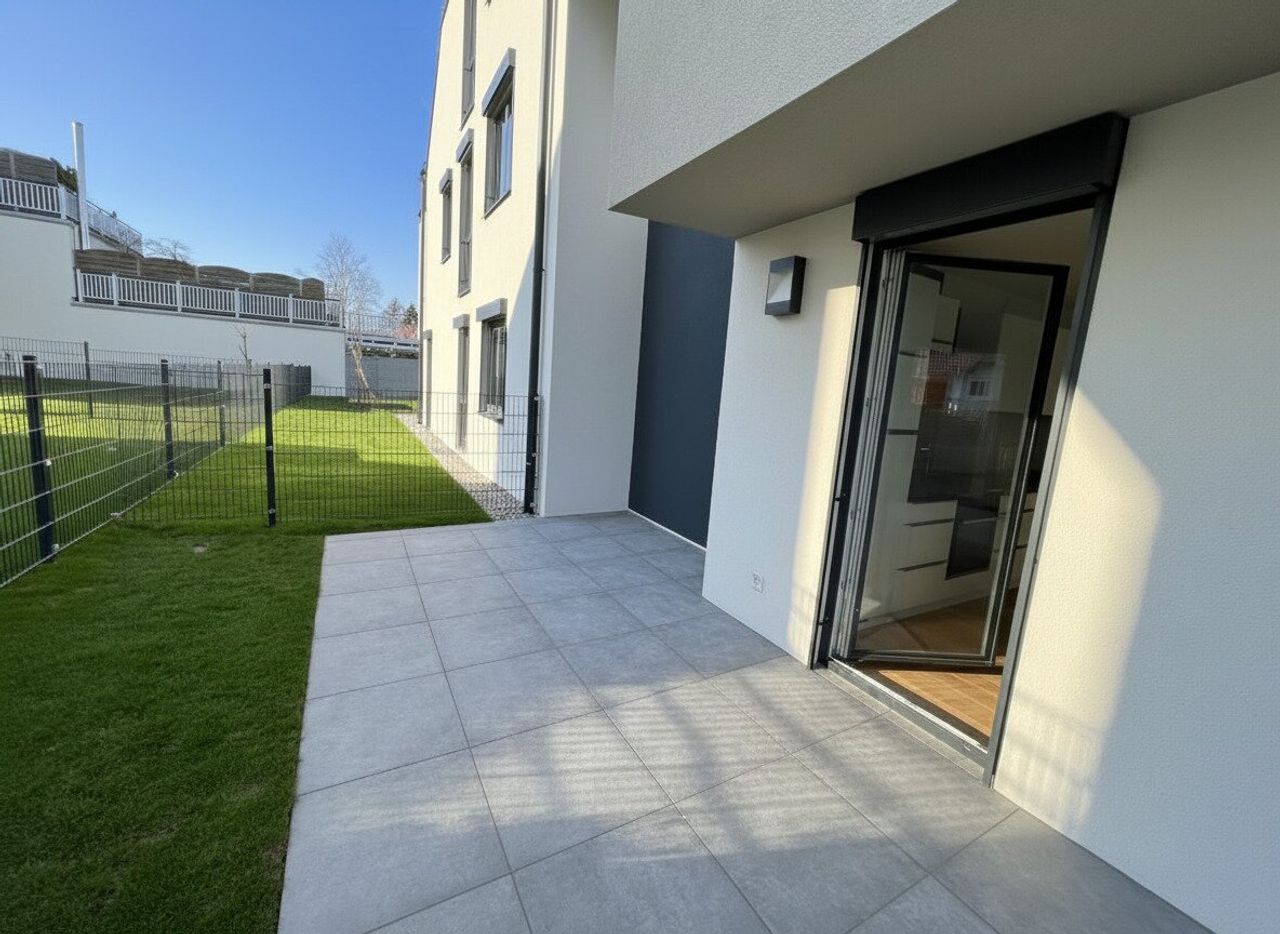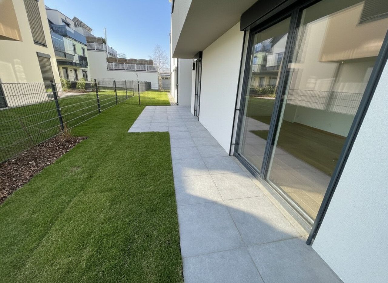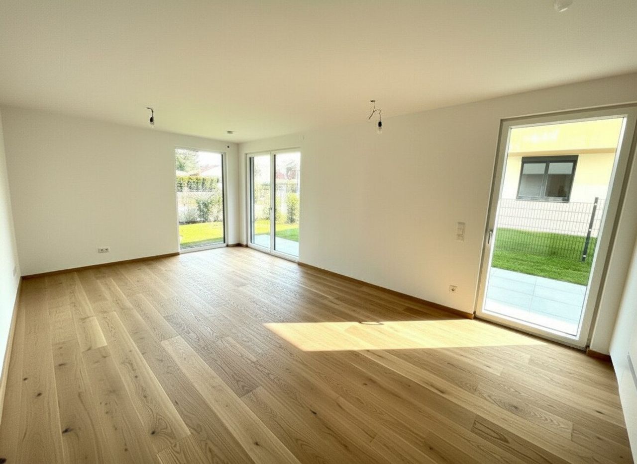 Die Wohnung beeindruckt durch ihre großartige Raumaufteilung und die hochwertige Ausstattung. Das Wohnzimmer verfügt über große Fensterflächen, welches den Zugang zur Terrasse und dem großzügigen Garten ermöglicht. Durch die elektrisch bedienbaren Außenbeschattungen haben Sie stets die Möglichkeit, natürliches Licht und Luft in den Räumlichkeiten...
