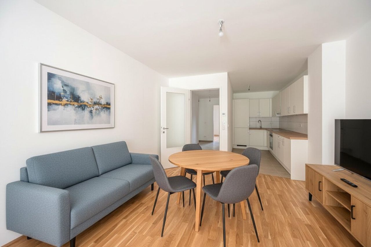 Nach dem Fotoshooting durch unsere Fotografen wurden einzelne Bilder mit einer AI Software nachbearbeitet. Die Möblierungsvorschläge sind nicht inkludiert, ausgenommen der oben beschriebenen Möblierung.