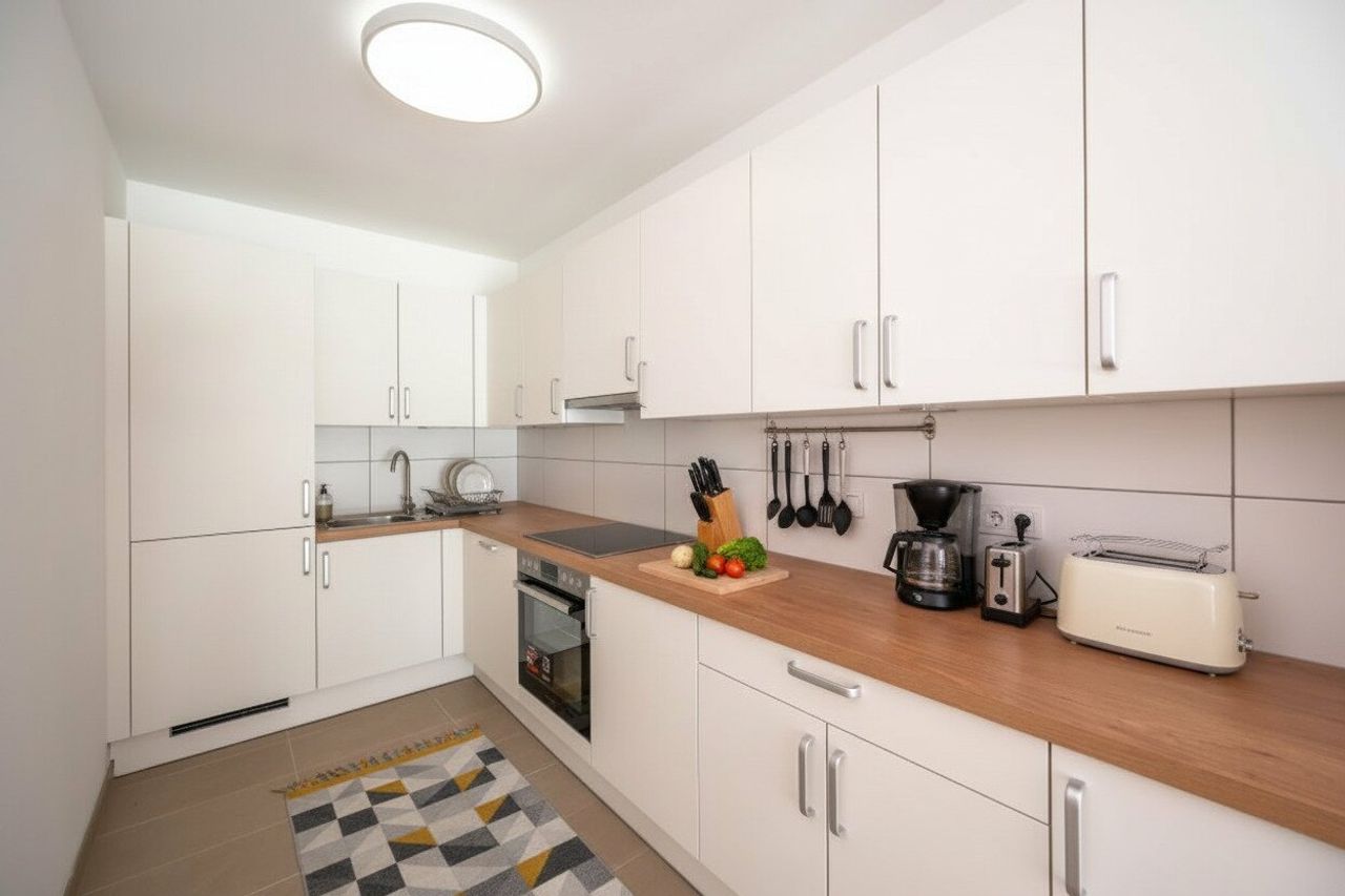 Die Wohnung hat geringe Betriebskosten. Eine Küche ist bereits eingebaut.