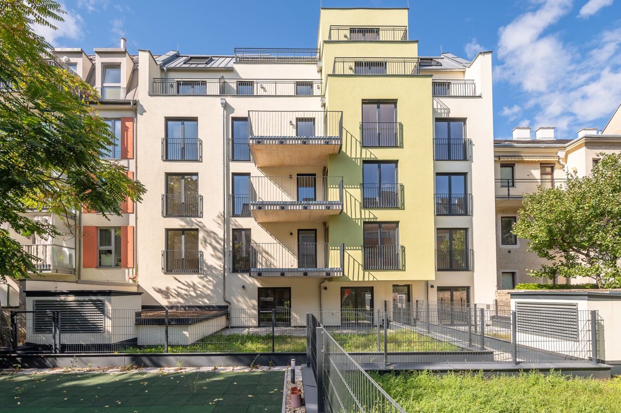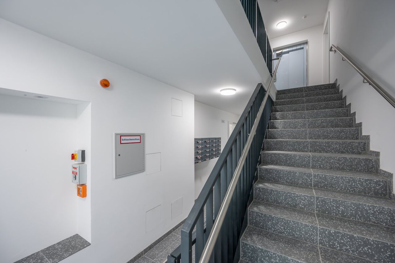 Diese Wohnung liegt in einer ruhigen Seitenstraße und befindet sich in einer soben fertiggestellten, neu errichteten Wohnhausanlage mit 20 Wohnungen, aufgeteilt auf 6 Stockwerke. Im Keller befinden sich 11 Tiefgaragenstellplätze, die zusätzlich erworben werden können.