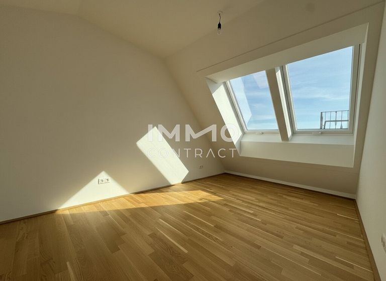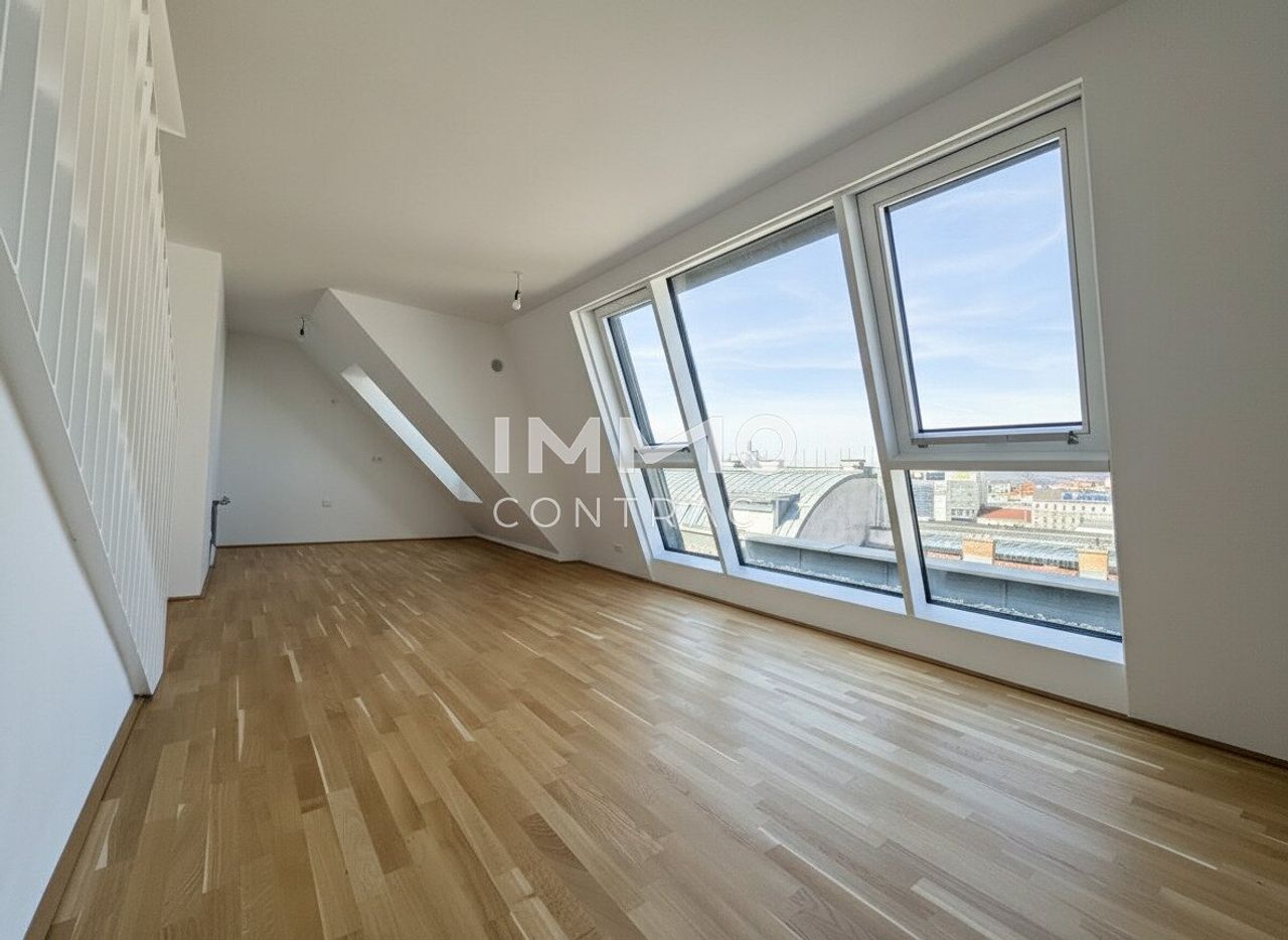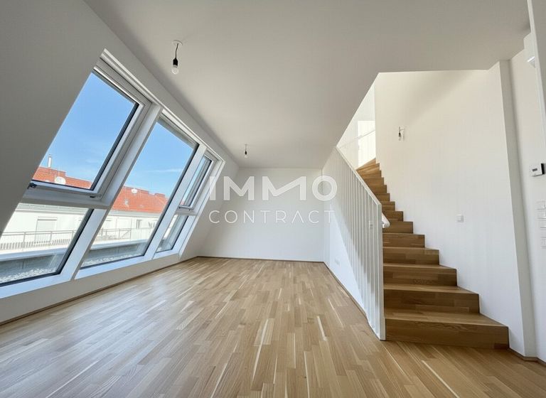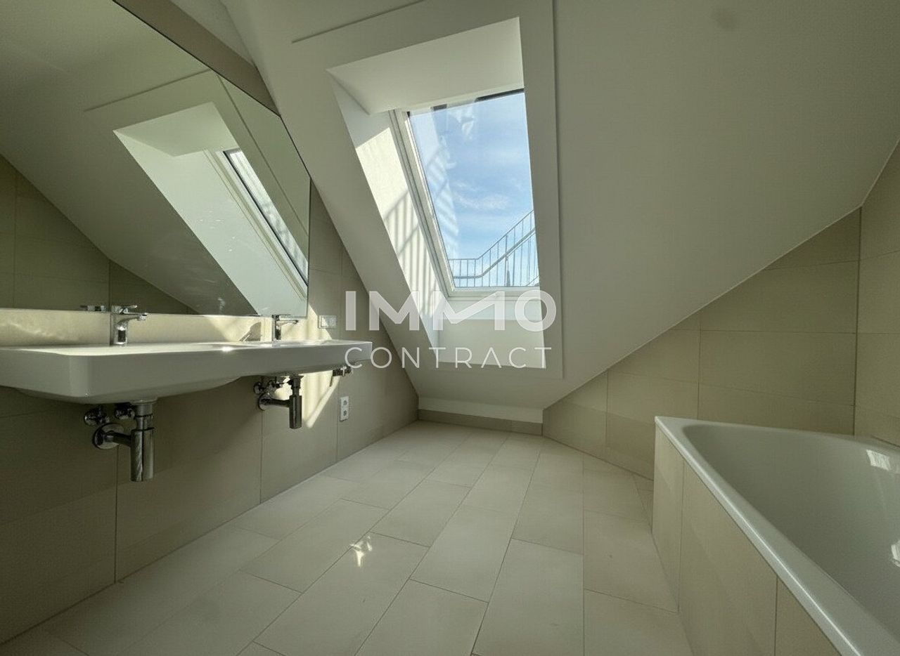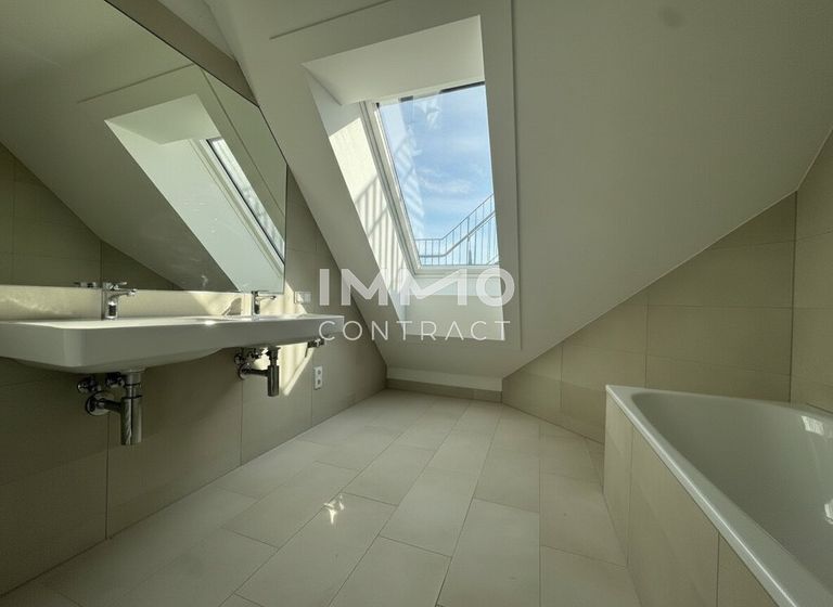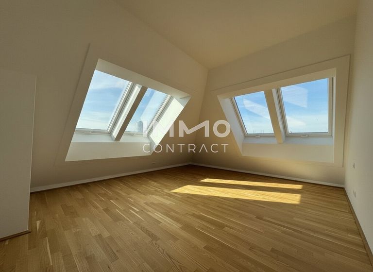 Willkommen in Ihrem neuen Zuhause: Diese großzügige, zentral begehbare und vollklimatisierte 3-Zimmer-Dachgeschosswohnung überzeugt mit rund 86 m² Wohnfläche sowie einer privaten Dachterrasse mit herrlichem Weitblick über Wien. Großflächige Dachfenster lassen viel Tageslicht in die Räume und schaffen ein besonders helles und angenehmes Wohnambiente. Das Herzstück bildet die rund 30 m² große Wohnküche mit direktem Zugang zur Terrasse, während zwei gut geschnittene Schlafzimmer, ein Badezimmer mit Doppelwaschbecken und Badewanne sowie ein separates WC für hohen Wohnkomfort sorgen. Über eine innenliegende Treppe gelangen Sie schließlich auf die private Dachterrasse – ein perfekter Ort, um entspannte Stunden über den Dächern der Stadt zu genießen.