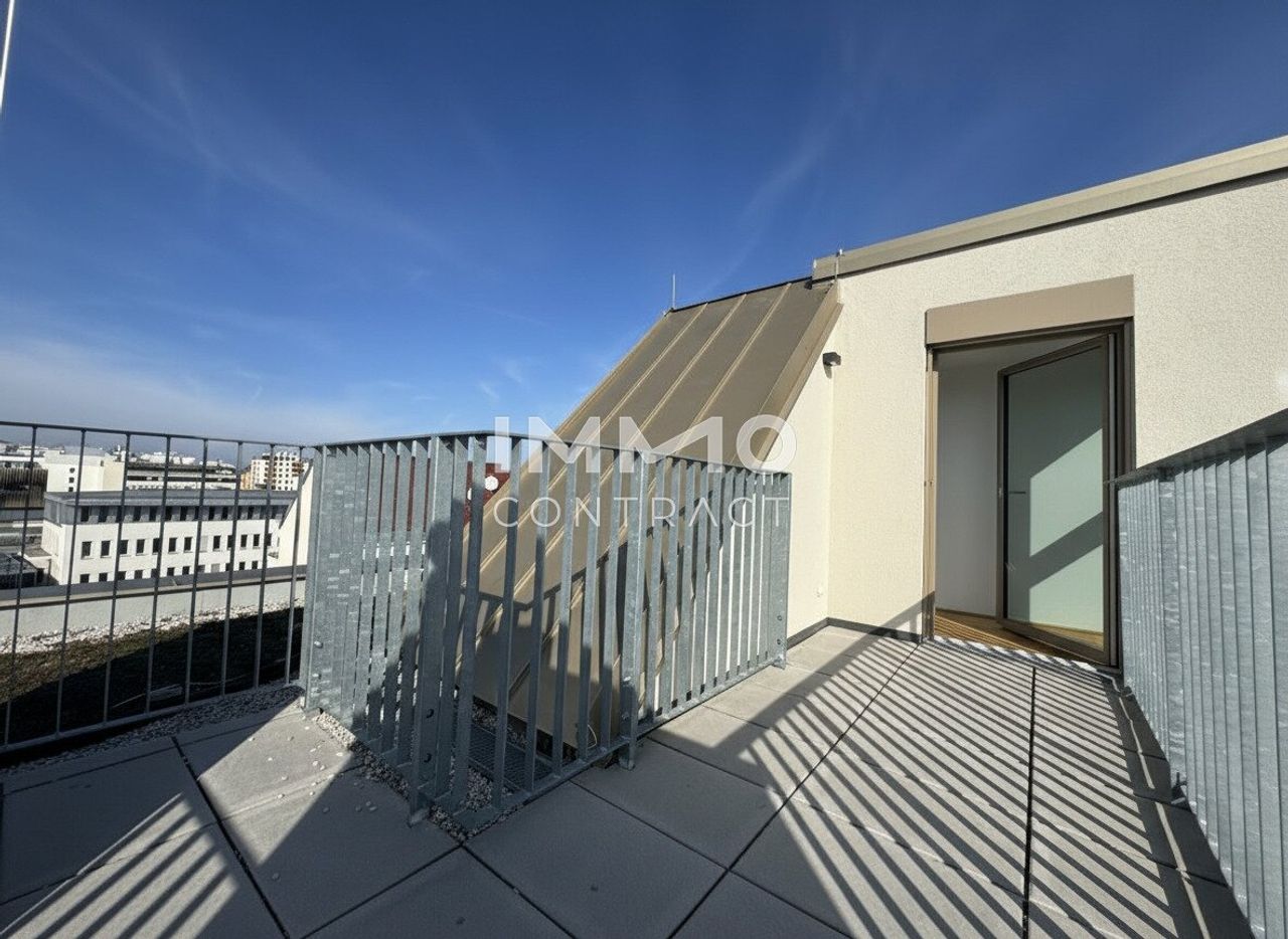 Willkommen in Ihrem neuen Zuhause: Diese großzügige, zentral begehbare und vollklimatisierte 3-Zimmer-Dachgeschosswohnung überzeugt mit rund 86 m² Wohnfläche sowie einer privaten Dachterrasse mit herrlichem Weitblick über Wien. Großflächige Dachfenster lassen viel Tageslicht in die Räume und schaffen ein besonders helles und angenehmes Wohnambiente. Das Herzstück bildet die rund 30 m² große Wohnküche mit direktem Zugang zur Terrasse, während zwei gut geschnittene Schlafzimmer, ein Badezimmer mit Doppelwaschbecken und Badewanne sowie ein separates WC für hohen Wohnkomfort sorgen. Über eine innenliegende Treppe gelangen Sie schließlich auf die private Dachterrasse – ein perfekter Ort, um entspannte...