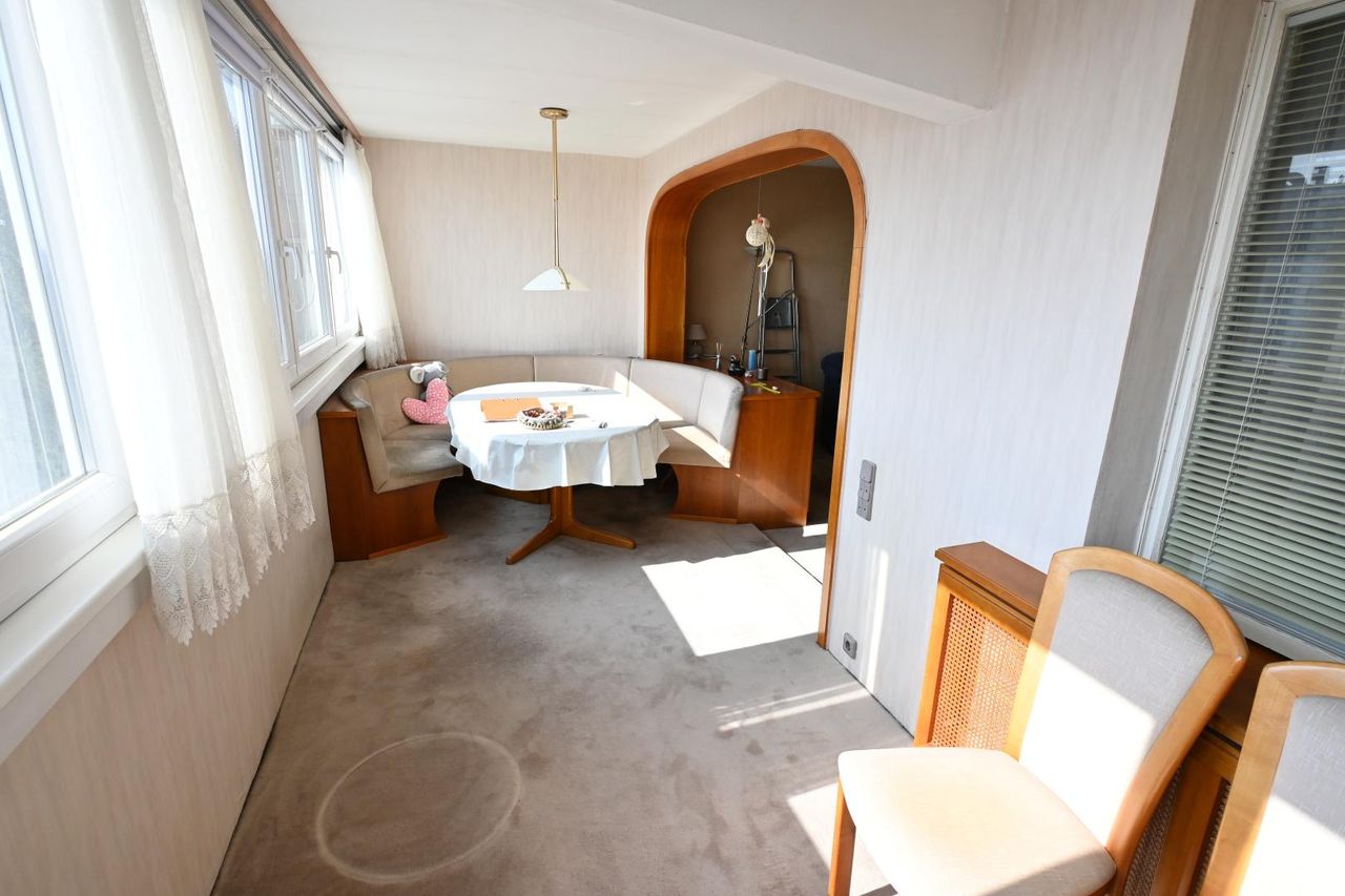 Die Fenster der Loggia wurden im Zuge des Verbaus erneuert, die Fenster der beiden weiteren Wohnräume sowie der Küche sollten allerdings repariert bzw. gegebenenfalls auch erneuert werden. Die Wohnung würde sich generell über eine Renovierung freuen.