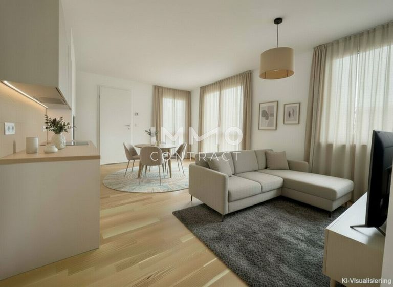 Die 92 hochwertigen Eigentumswohnungen, verteilt auf zwei Stiegen, bieten durchdachte Grundrisse, helle Räume und vielfältige Wohnungsgrößen – vom kompakten Studio bis zur großzügigen Vierzimmer-Familienwohnung. Freiflächen wie Loggien, Balkone, Terrassen oder Eigengärten erweitern den Wohnraum ins Freie und bieten private Rückzugsorte mit hoher Lebensqualität.