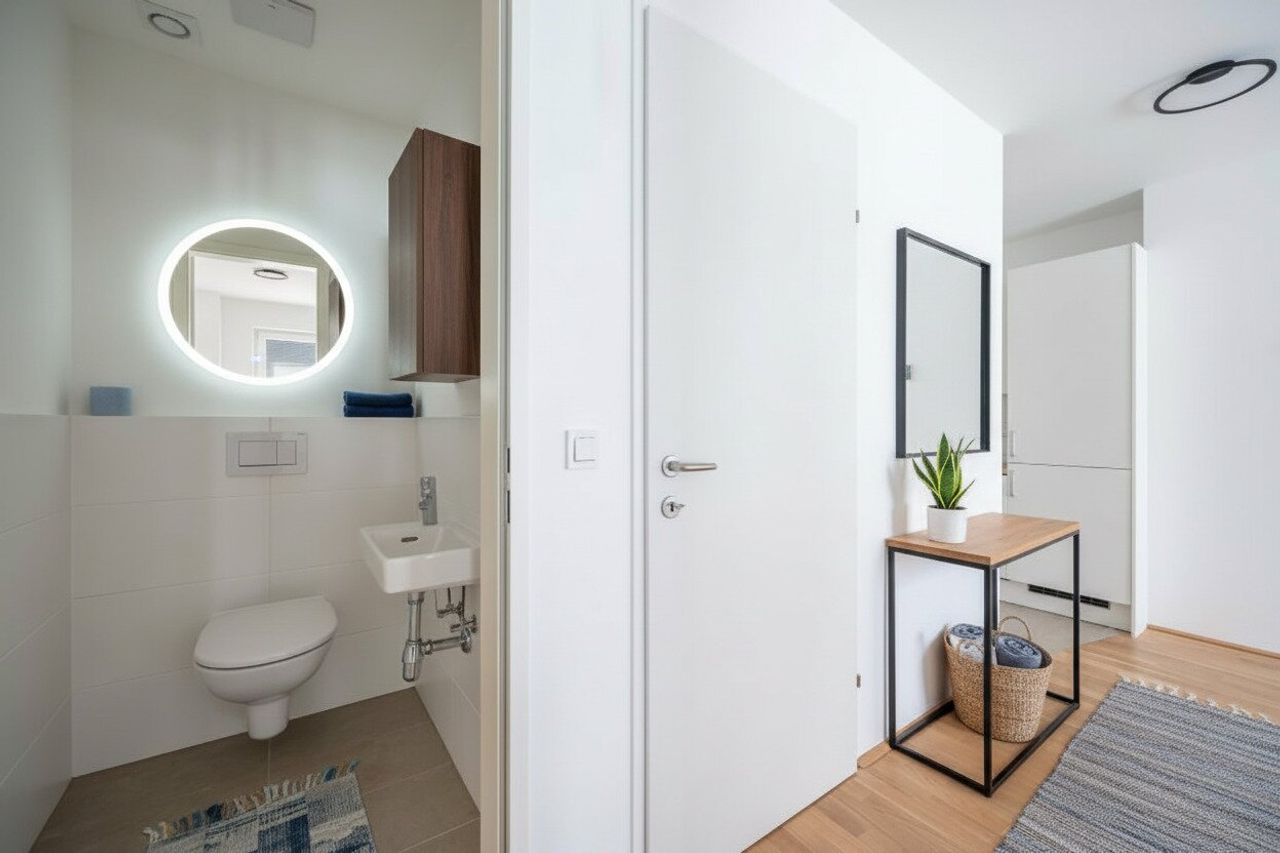 Nach dem Fotoshooting durch unsere Fotografen wurden einzelne Bilder mit einer AI Software nachbearbeitet. Die Möblierungsvorschläge sind nicht inkludiert, ausgenommen der oben beschriebenen Möblierung.