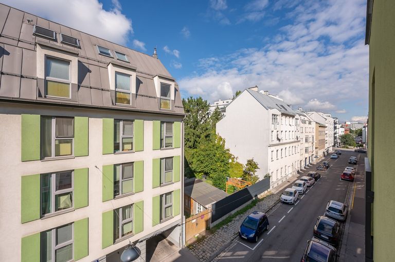 Diese Wohnung liegt in einer ruhigen Seitenstraße und befindet sich in einer soben fertiggestellten, neu errichteten Wohnhausanlage mit 20 Wohnungen, aufgeteilt auf 6 Stockwerke. Im Keller befinden sich 11 Tiefgaragenstellplätze, die zusätzlich erworben werden können.