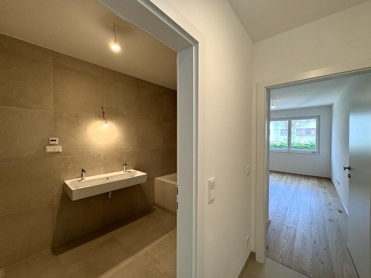 Die Ausstattung ist hochwertig, modern und auf Komfort und Energieeffizienz bedacht. Die Wohnung verfügt über eine Sicherheitseingangstür, Fußbodenheizung und Deckenkühlung mit Wärmepumpe, Photovoltaikanlage am Dach, dreifach verglaste Fenster sowie elektrisch steuerbare Raffstores und ausreichend Steckdosen, Internet- und Datenanschlüsse.