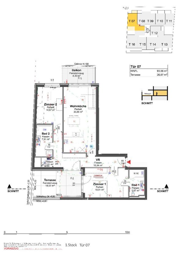 Die Top 7 ist eine 94 m², 3 Zimmerwohnung mit Terrasse und befindet sich im 1.OG des Hauses. Der Schnitt ist kompakt und alle Zimmer sind getrennt begehbar. Zur Verfügung stehen, ein Wohnzimmer mit offener Küche und Ausgang in einer West-seitige Terrasse, 2 Schlafzimmer, jedes mit eigenem Bad, eines davon mit einer eigenen Terrasse und nicht zuletzt eine separate Toilette.