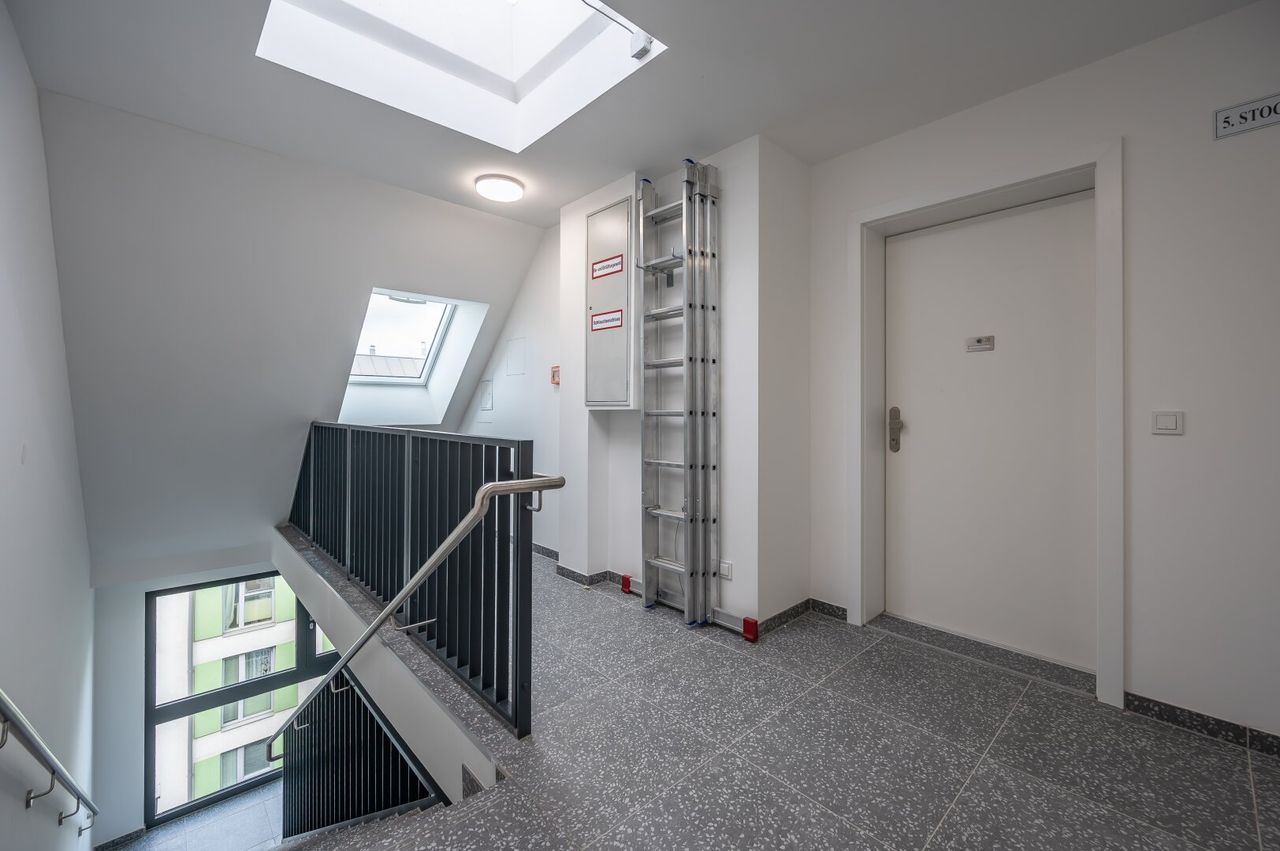 Diese Wohnung liegt in einer ruhigen Seitenstraße und befindet sich in einer soben fertiggestellten, neu errichteten Wohnhausanlage mit 20 Wohnungen, aufgeteilt auf 6 Stockwerke. Im Keller befinden sich 11 Tiefgaragenstellplätze, die zusätzlich erworben werden können.