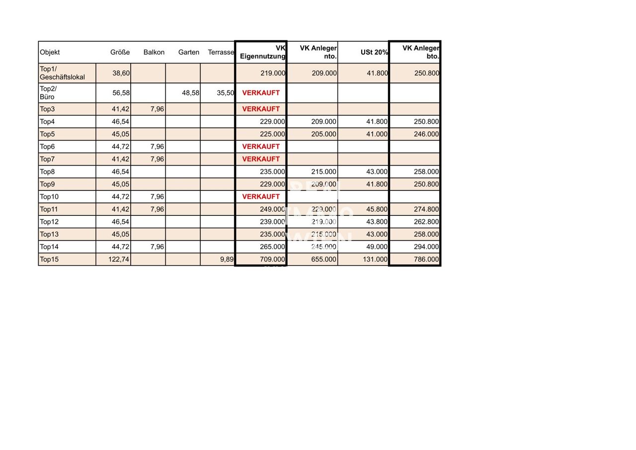 Alle Tops sind für Eigennutzung erwerbbar als auch in einer Anlegervariante mit ausgewiesener MWSt.