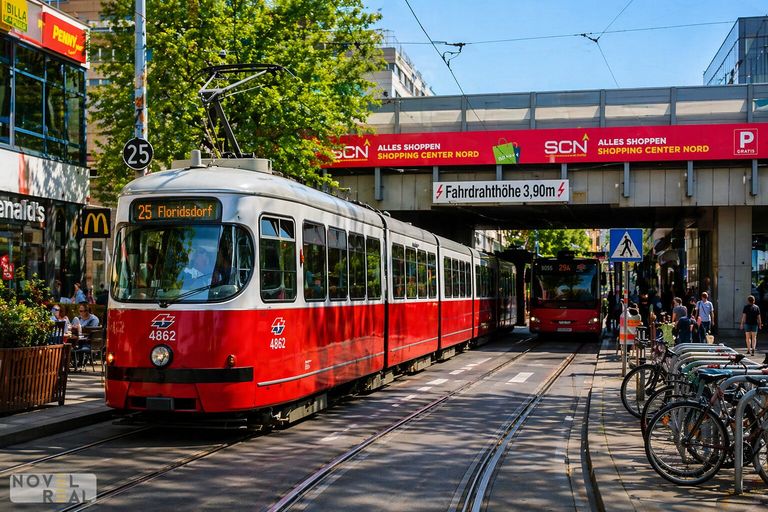 - Die Straßenbahnen 25, 26, 30, 31, 33 und der Bus 36a befinden sich fast vor der Haustüre. So erreichen Sie in wenigen Minuten den Bahnhof Floridsdorf (U-Bahnlinie U6, div. S-Bahn, Regionalzüge) sowie die Alte und Neue Donau und gelangen mit der Straßenbahn 31 rasch und ohne Umsteigen direkt in die Wiener Innenstadt oder ins Weinbaugebiet Stammersdorf. Die Straßenbahnlinie 26 ist die perfekte Verbindung zwischen dem 21. und 22. Bezirk und bietet somit eine direkte Anbindung an die Vienna International School, die Japanische Internationale Schule, die veterinärmedizinische Universität und den Campus Donaufeld.
