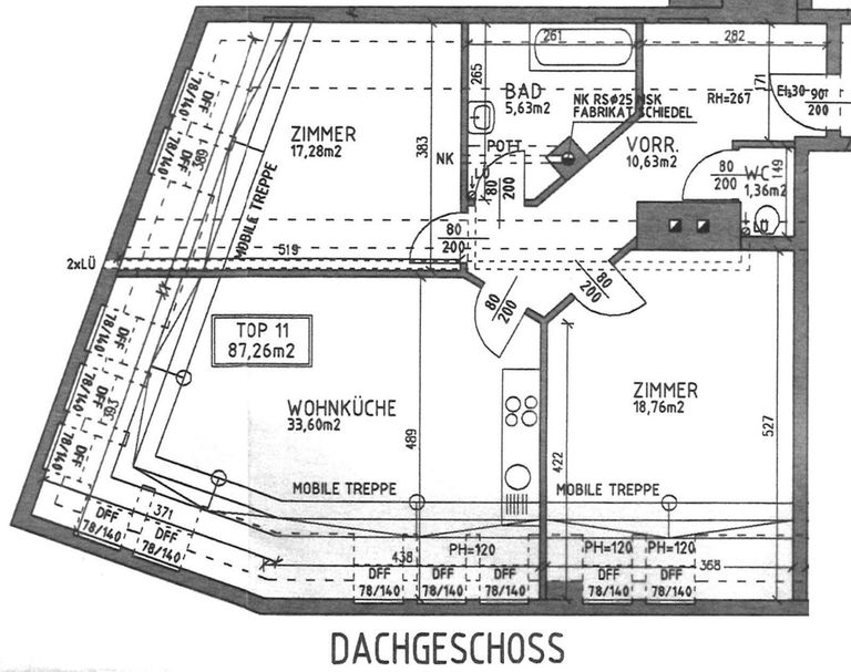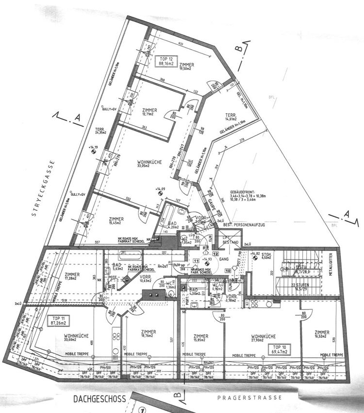 Wohnfläche 87,26 m² + Dachterrasse 62,77 m² (gewichtete Fläche 108 m² = € 3.700/m²)