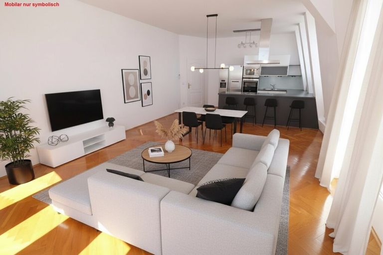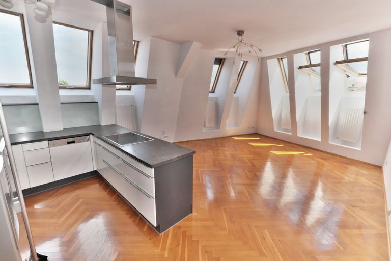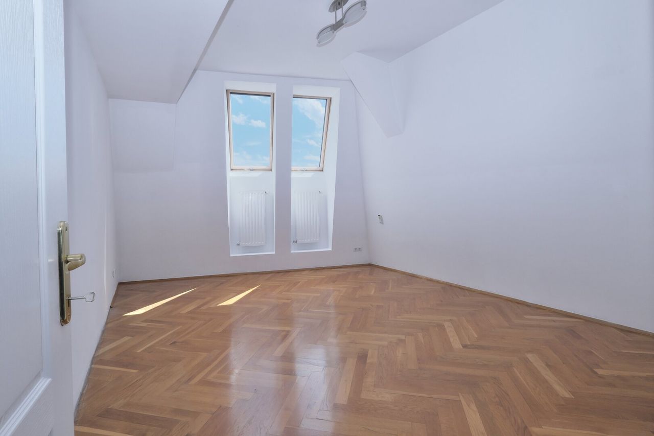 Die Wohnung hat keine störenden Schrägwände und hohe Räume - was bei einer Dachterrassenwohnung eher selten ist. Fenster welche eine wahre Lichtflut in die Räume lassen. Sehr hell!