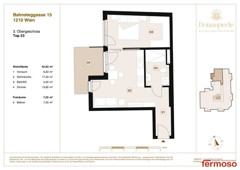 Wohnfläche: ca. 43,07 m² Freiflächen gesamt: 7,55...