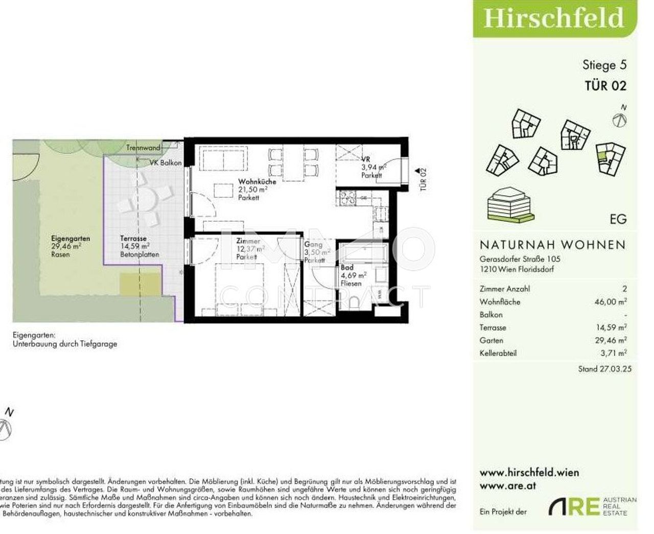 Willkommen im Hirschfeld – Leben im Grünen, nördlich der Donau Am Rande eines weitläufigen Grünzugs, der sich bis zum Bisamberg erstreckt, entsteht im naturnahen Hirschfeld ein einzigartiges Wohnquartier: Auf drei Bauplätzen entwickelt sich ein modernes Architektur-Ensemble mit elf Gebäuden und rund 440 Wohnungen – ideal für alle, die Ruhe im Grünen mit urbaner Lebensqualität verbinden möchten. Vielfalt und Lebensqualität Hirschfeld bietet durchdachten Wohnraum für Familien, Paare, Singles und Menschen jeden Alters. Das Quartier ist geprägt von einem lebendigen Miteinander – ein Ort des Ankommens, des Begegnens und des Verweilens. Die Esplanade mit Allee, der zentrale Quartiersplatz sowie zahlreiche lauschige Plätze...
