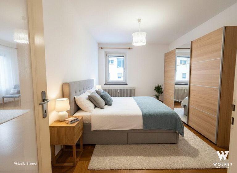 Die dargestellten Fotos sind mittels künstlicher Intelligenz virtuell bearbeitet sein und dienen ausschließlich der Illustration möglicher Einrichtungsmöglichkeiten. Weitere Bilder auf Anfrage.