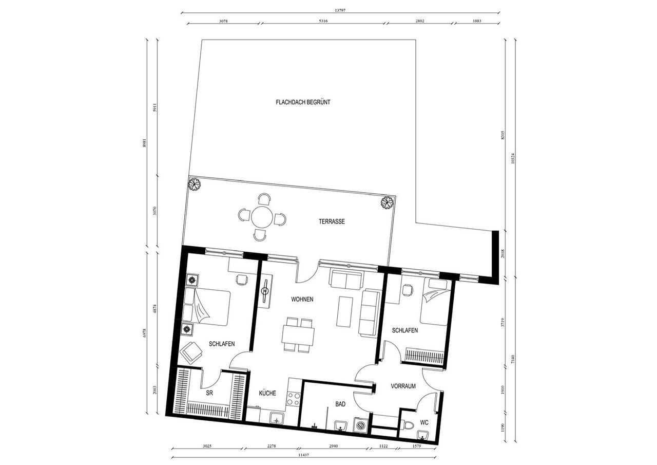 - 1 Wohn-Esszimmer mit Terrasse