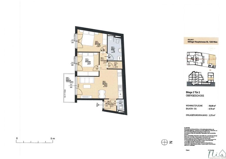 TOP 2 – 3 Zimmer -> Gesamtfläche ca. 62.71 m² - WNFL ca. 56.98 m² / Balkon ca. 5.73 m²,