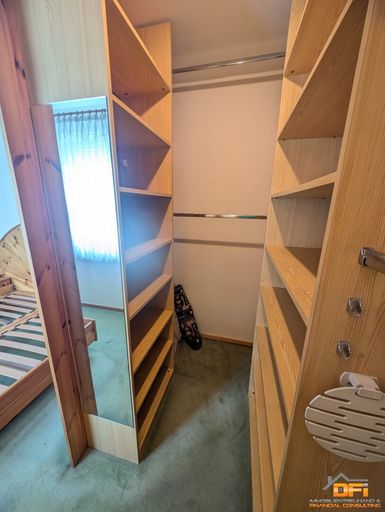 Schlafzimmer: Dieses Zimmer hat eine gute Größe und wurde sogar insofern abgeteilt, als dass man eine kleine begehbare Garderobe im hinteren Bereich geschaffen hat.