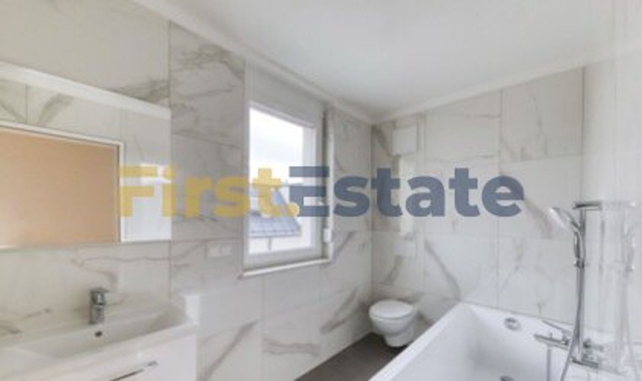 Badezimmer mit Fenster und hochwertiger Sanitärausstattung
