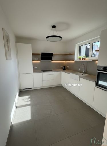 - Fliesen Feinsteinzeug 120 x 60 cm in der Küche, dem Bad und im Vorraum