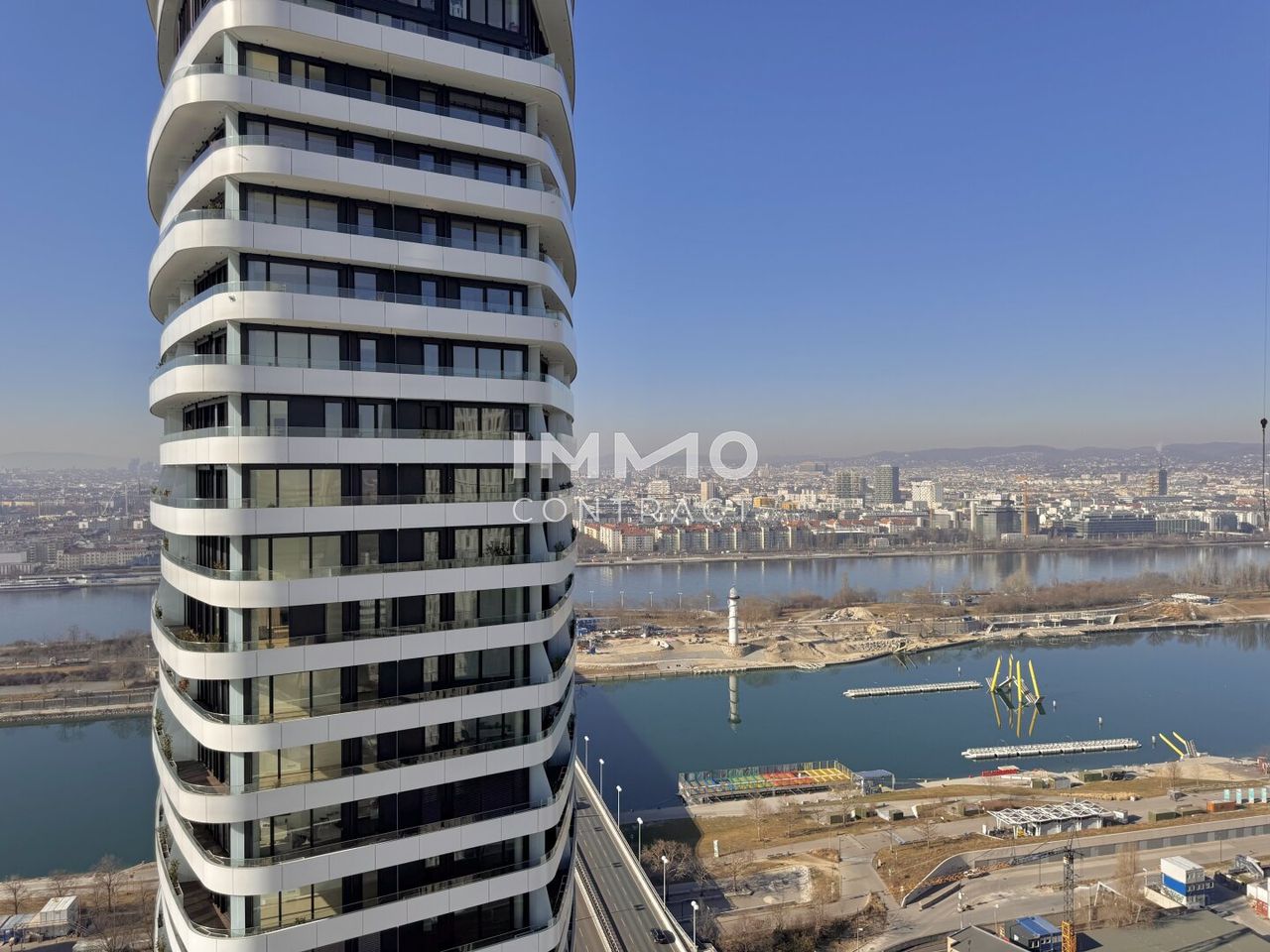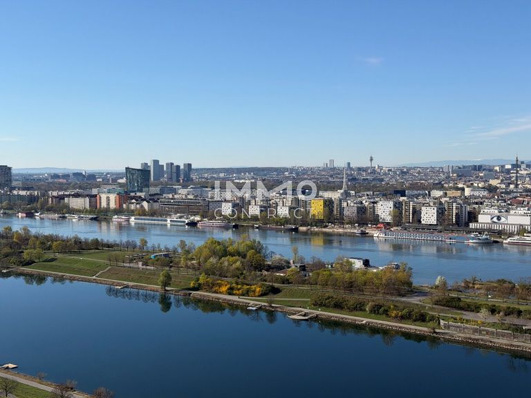 This exceptional 4-room residence offers approximately 151 m² of refined living space in one of Vienna’s most sought-after waterfront locations. Designed within an architecturally distinctive high-rise, the property combines modern elegance with a truly unique lifestyle directly along the Danube.