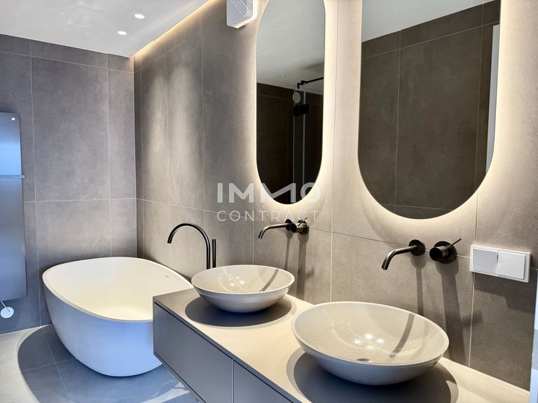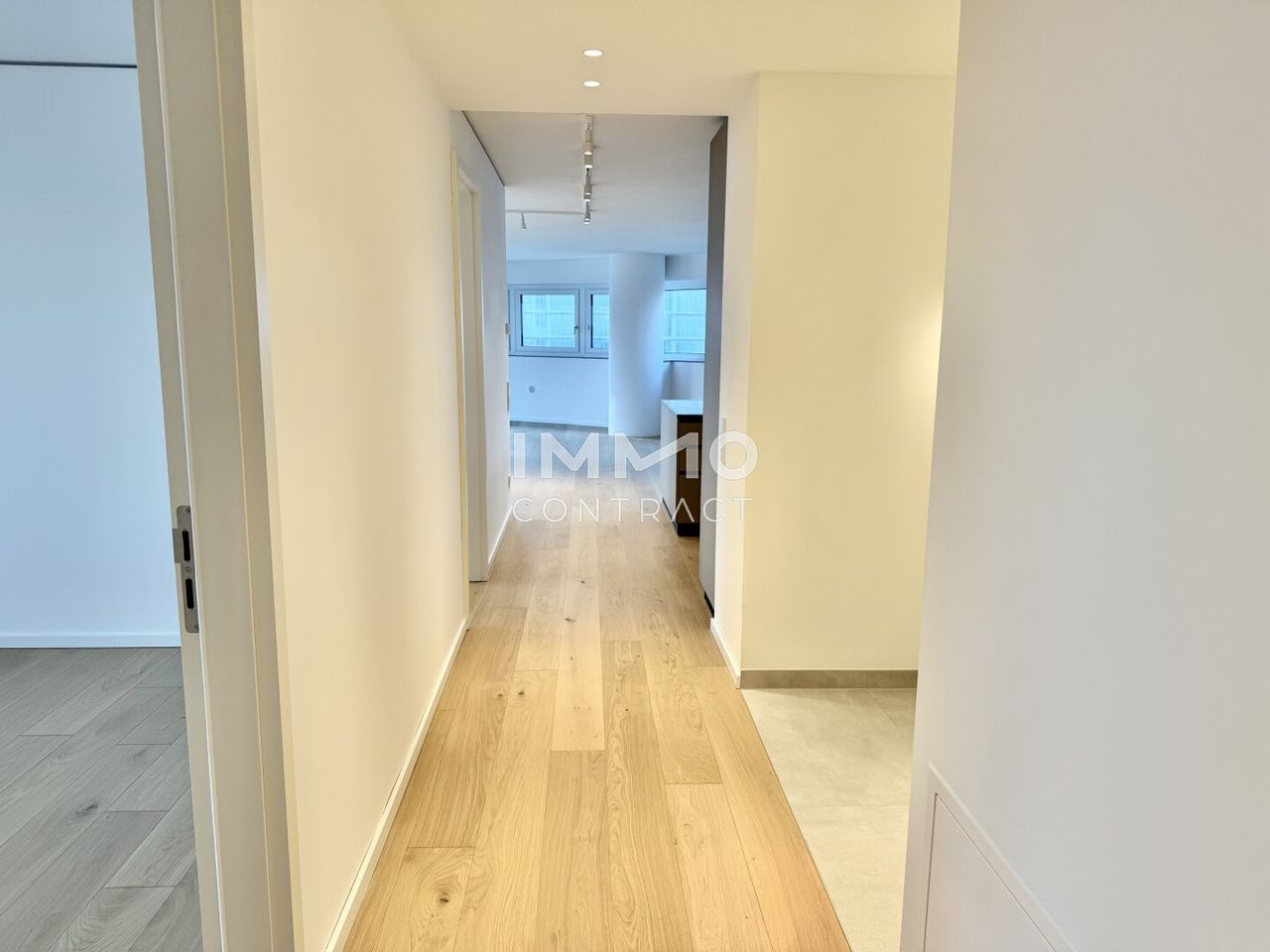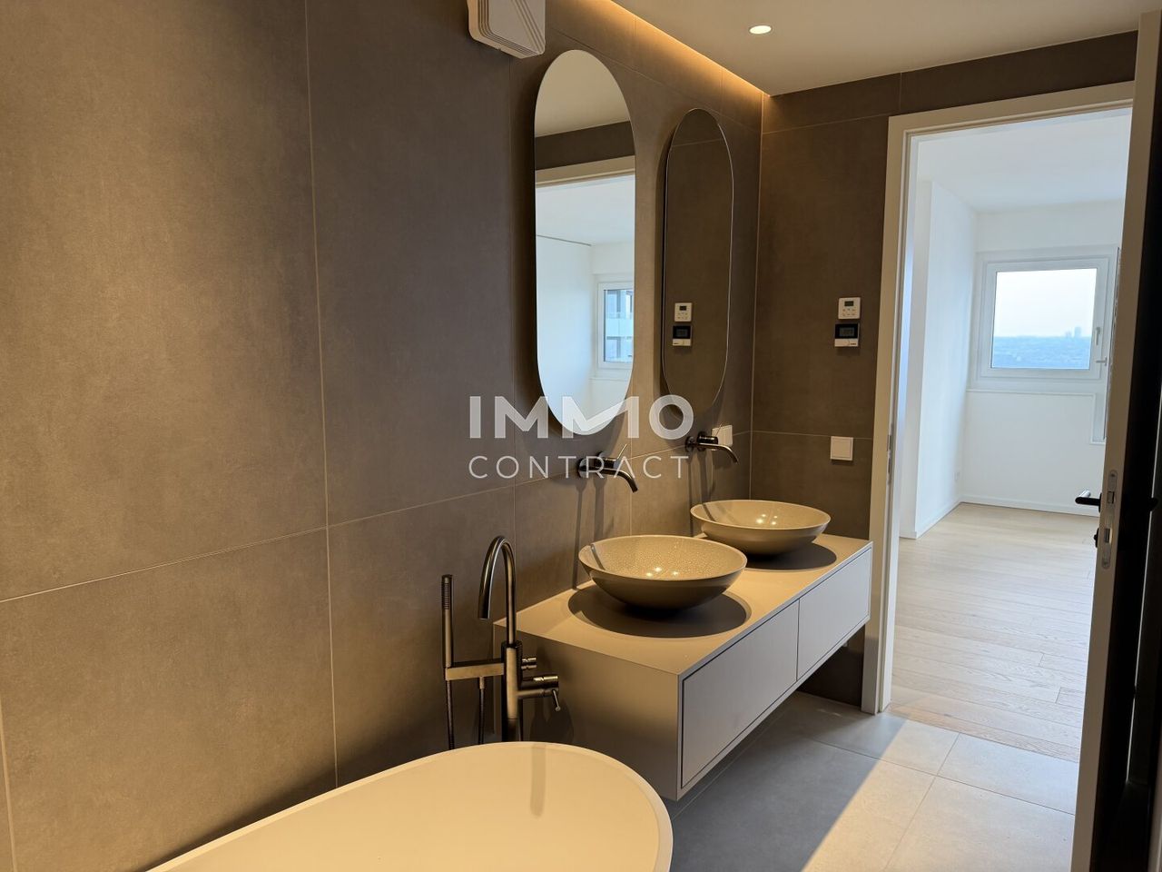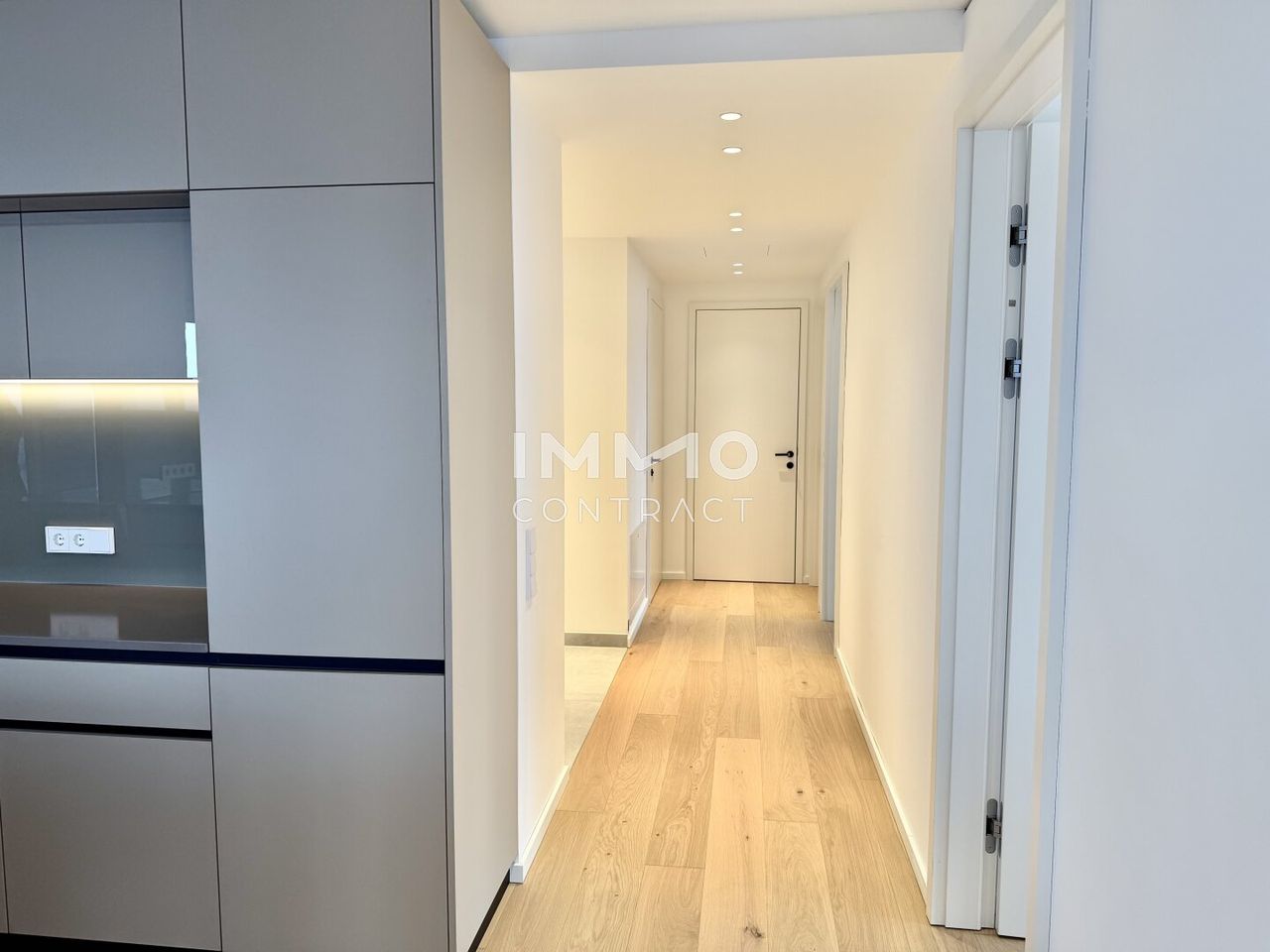 The apartment is characterized by bright, open interiors and a sophisticated finish throughout, creating a harmonious balance between comfort and contemporary design. At its heart lies a spacious living area that seamlessly connects to a generous skyline loggia, offering breathtaking panoramic views across the river and Vienna’s iconic skyline.