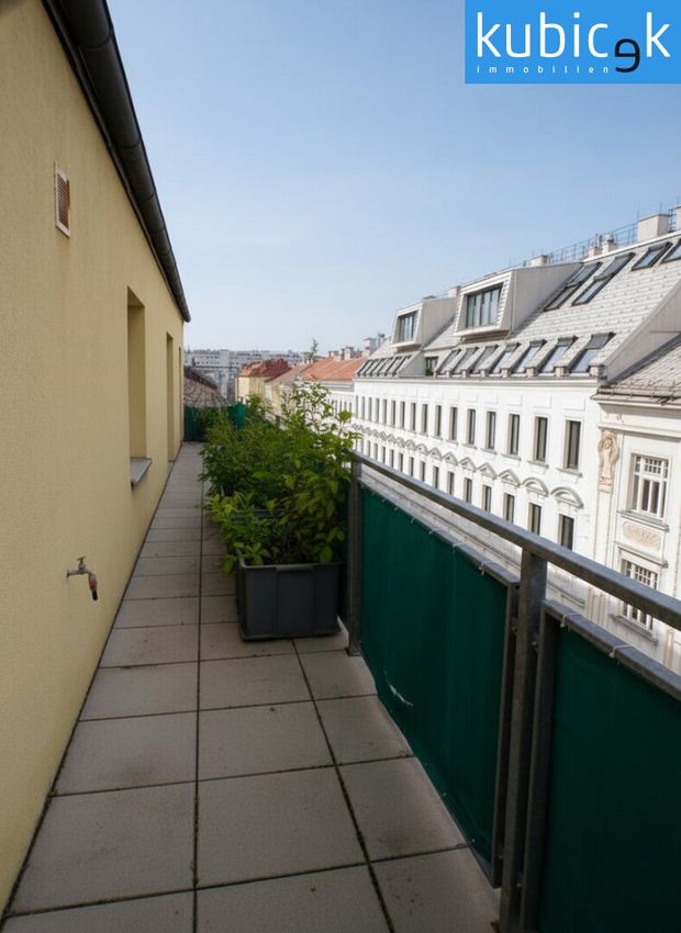 Diese lichtdurchflutete Dachgeschoßwohnung besticht durch ihr freundliches Ambiente und die besonders großzügige, südwestlich ausgerichtete Terrasse, die einen herrlichen Blick ins Freie und viel Sonne bis in die Abendstunden bietet. Die Wohnung befindet sich im obersten 3. Stockwerk eines gepflegten Hauses ohne Lift und bietet ein einzigartiges Wohngefühl über den Dächern der Stadt.