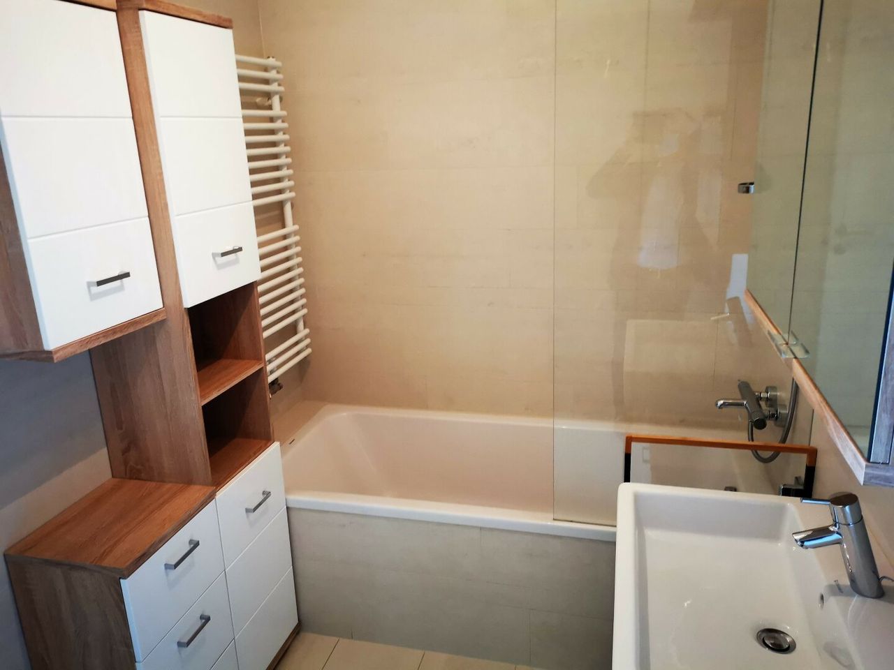 Das Bad ist mit einer Fußbodenheizung (elektrisch) ausgestattet. Mittels Raumthermostat können Sie die Heizung individuell steuern.