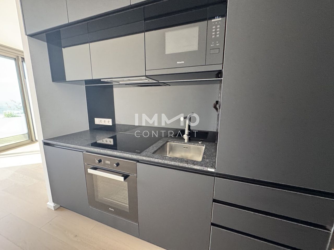 Ein kompakter Eingangsbereich mit Garderobe bietet stilvollen Stauraum. Das Badezimmer, komplett mit hochwertiger Ausstattung und WC, glänzt mit zeitlosem Design und Komfort. Die bereits vorhandene Küche mit erstklassigen MIELE-Geräten lädt zu kleinen kulinarischen Abenteuern ein. Der gemütliche Wohn-, Schlaf- und Essbereich mit bodentiefen Fenstern offenbart einen atemberaubenden Blick auf die Alte und Neue Donau sowie auf die Skyline der Stadt. Lassen Sie sich vom besonderen Charme des Morgenlichts verzaubern und erleben Sie die Vormittagssonne in diesem kleinen Juwel.