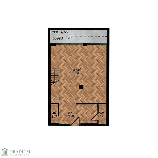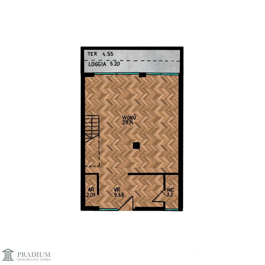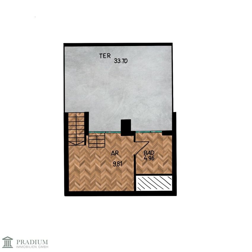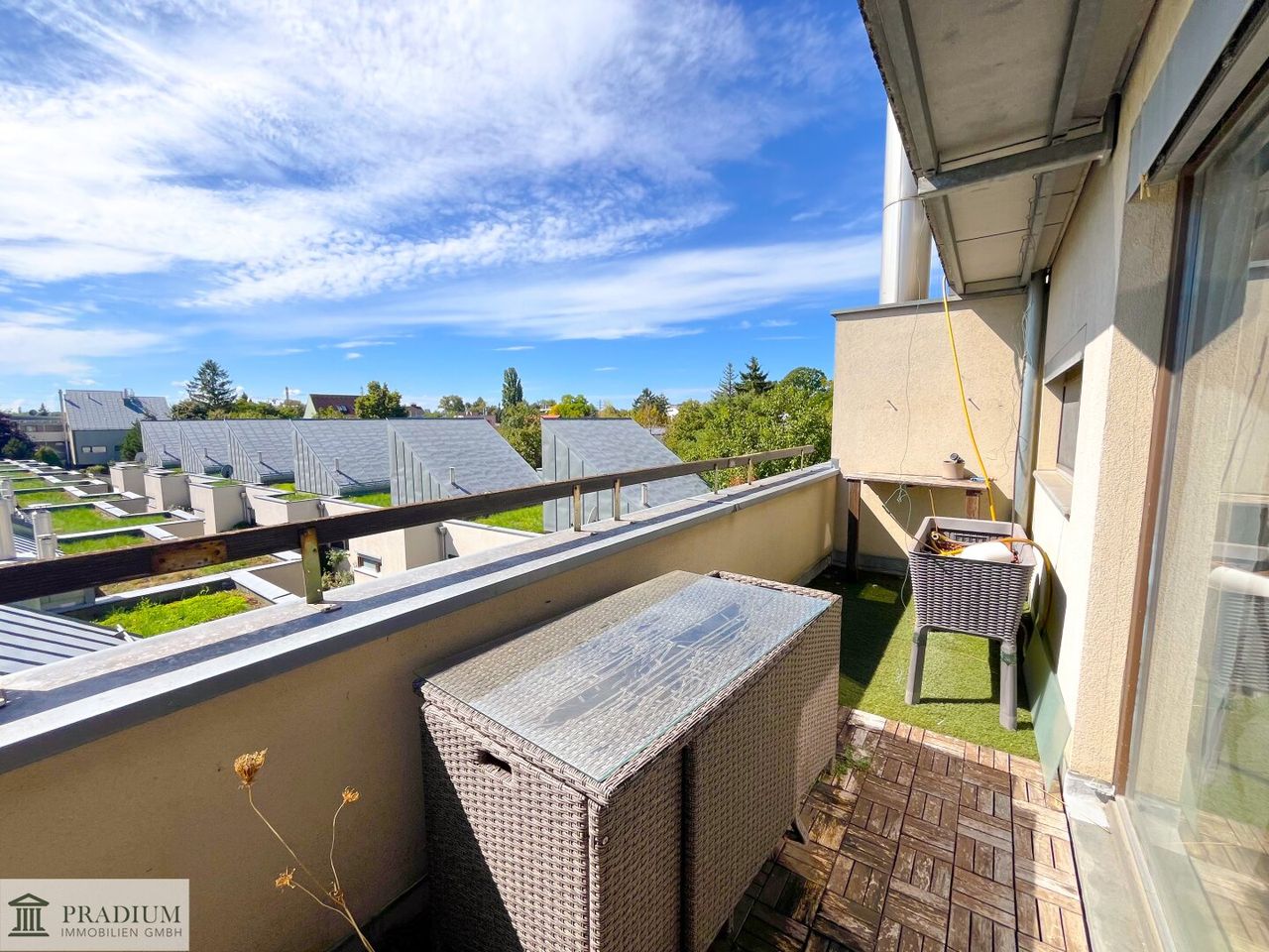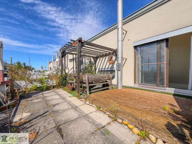 Diese stilvolle Maisonette-Wohnung mit ca. 68 m² Wohnfläche besticht durch ihre großzügige Raumaufteilung, lichtdurchflutete Wohnbereiche und gleich zwei Terrassen, die zum Entspannen im Freien einladen. Bereits beim Betreten überzeugt die Wohnung mit einem geräumigen Vorraum, einem separaten WC sowie einer praktischen Abstellkammer. Von hier aus gelangen Sie in den rund 40 m² großen Wohn- und Essbereich, der durch seine offene Gestaltung ein besonders angenehmes Wohngefühl schafft. Große Fensterflächen sorgen für viel Tageslicht und bieten Zugang zur ca. 10 m² großen südseitigen Terrasse – perfekt für sonnige Stunden und gemütliche Mahlzeiten im Freien. Ein besonderes Highlight sind die eleganten Stiegen, die den Wohnbereich mit dem oberen Geschoss verbinden. Dort befindet sich das ruhig gelegene Schlafzimmer sowie das schöne Badezimmer. Von hier aus gelangen Sie auf die beeindruckende Dachterrasse mit ca. 34 m², die mit ihrem traumhaften Weitblick ins Grüne und über die Umgebung eine echte Oase über den Dächern Asperns darstellt.