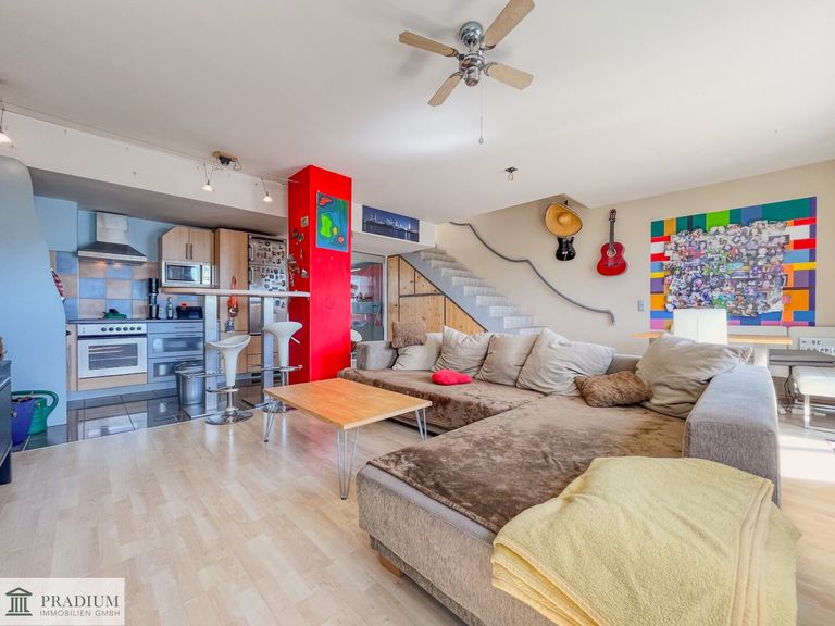Diese stilvolle Maisonette-Wohnung mit ca. 68 m² Wohnfläche besticht durch ihre großzügige Raumaufteilung, lichtdurchflutete Wohnbereiche und gleich zwei Terrassen, die zum Entspannen im Freien einladen. Bereits beim Betreten überzeugt die Wohnung mit einem geräumigen Vorraum, einem separaten WC sowie einer praktischen Abstellkammer. Von hier aus gelangen Sie in den rund 40 m² großen Wohn- und Essbereich, der durch seine offene Gestaltung ein besonders angenehmes Wohngefühl schafft. Große Fensterflächen sorgen für viel Tageslicht und bieten Zugang zur ca. 10 m² großen südseitigen Terrasse – perfekt für sonnige Stunden und gemütliche Mahlzeiten im Freien. Ein besonderes Highlight sind die eleganten Stiegen,...
