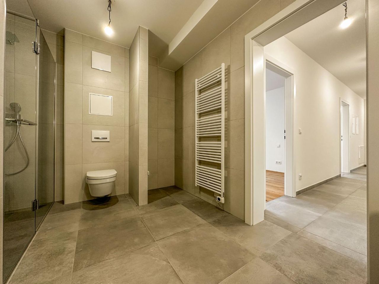 The apartment is placed only two minutes away from the U1- Rennbahnweg, in a new high-quality low energy-house. Not only the infrastructure is unique, but everything just fits – the lay-outs are smart, the terraces are generous and the fittings are exklusive.