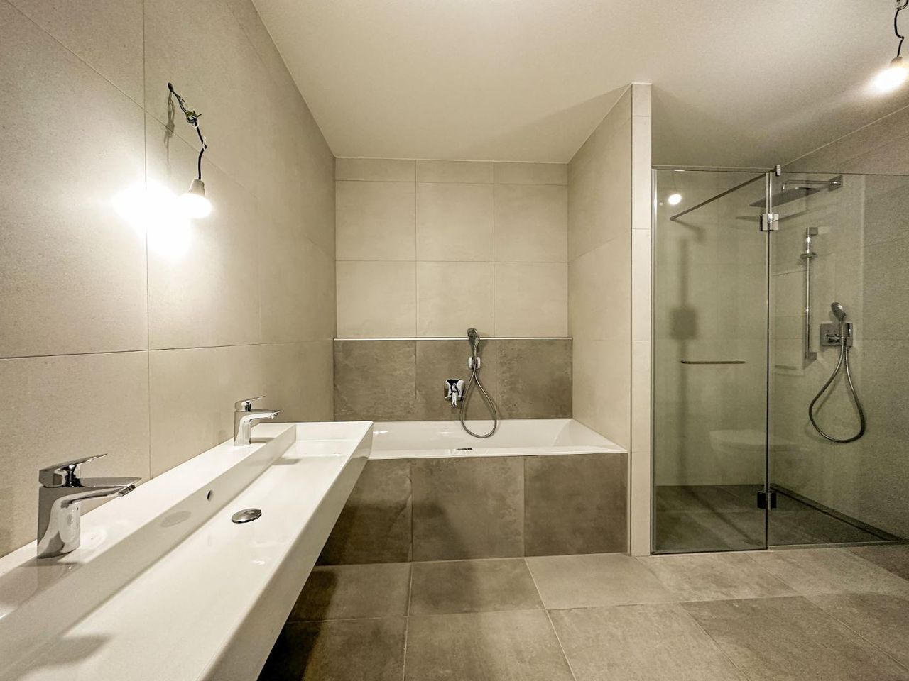 Top 1 is a 88 m², 3 rooms apartment with 39 m² terrace, 119 m² own garden and is placed onto the garden floor of the residence. All rooms are separately accessible. Available are a generous living with open kitchen and exit into the west oriented garden, 2 bedrooms, one of which with a walk in wardrobe, all with its own terrace/garden exit, a big bathroom with walk-in shower, tube and toilet, as well as a separate toilet. In addition there is the possibility of a direct access through the garden or through the staircase.