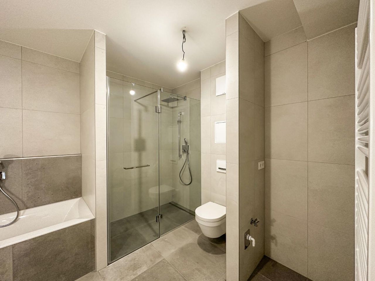 Die Ausstattung ist hochwertig, modern und auf Komfort und Energieeffizienz bedacht. Die Wohnung verfügt über eine Designerküche, Sicherheitseingangstür, Fußbodenheizung, dreifach verglaste Fenster sowie elektrisch steuerbare Raffstores und ausreichend Steckdosen, Internet- und Datenanschlüsse.