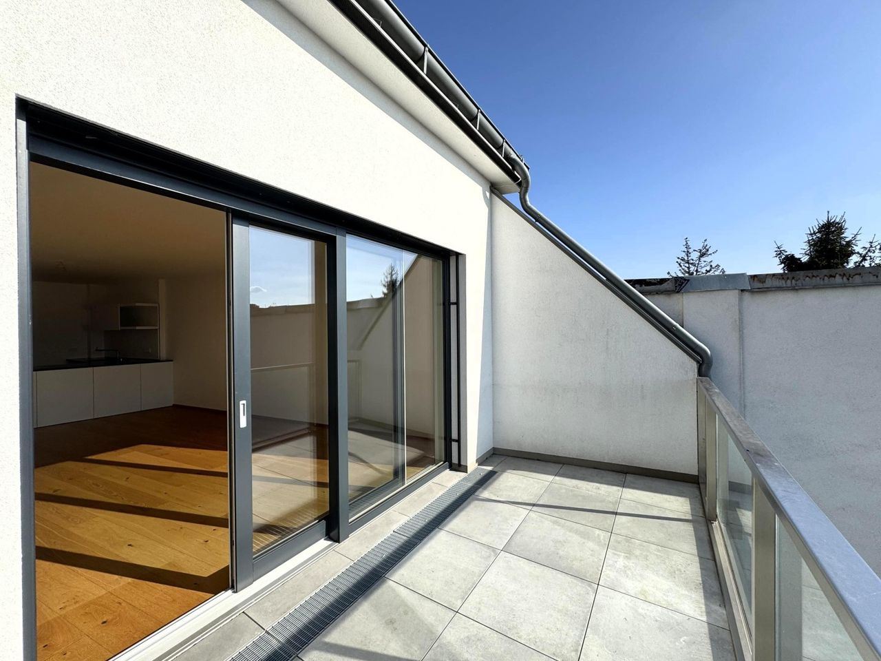 Valmacor Objekt Nr.: 3358/823 Weitere Angebote auf www.VALMACOR.at Nur 10 Minuten entfernt von U2 Aspern, steht ein neues hochwertiges Niedrigenergiehaus mit viel Flair und Wohnqualität. Die Infrastruktur ist ideal durch die ausgezeichnete Verkehrsanbindung, sowie exzellente Bildungseinrichtungen, Einkaufs- und Erholungsmöglichkeiten ( Donau; Lobau; Seestadt ). Die Wohnung befindet sich im ersten Dachgeschoss des Hauses. Sie ist sehr hell, großzügig geschnitten und getrennt begehbar. Im Eingangsbereich ist ausreichend Garderobenplatz. Unmittelbar sind beide Schlafzimmer getrennt erreichbar sowie 2 Bäder und ein Wirtschaftsraum. Ein großzügiges Wohnzimmer mit offener Küche mit allen Geräten von Miele und eine daran angeschlossene Loggia folgen. Die Ausstattung ist hochwertig,...