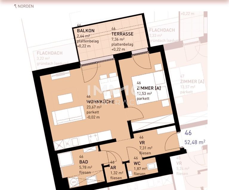 Besonderes Augenmerk wurde auf ein angenehmes Wohngefühl gelegt: Alle Wohnungen verfügen über private Freiflächen in Form von Eigengärten, Terrassen, Balkonen oder Loggien. Diese erweitern den Wohnraum nach...