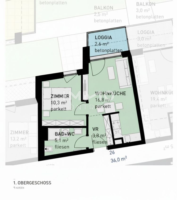 - Jede Wohnung mit privater Freifläche (Loggia, Balkon, Terrasse, Eigengarten)