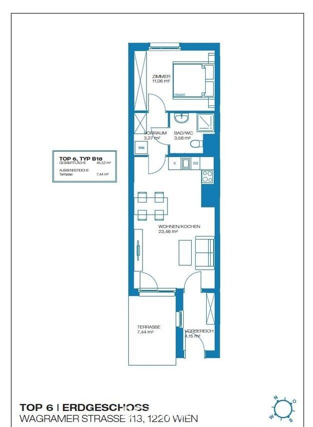 In zentraler Lage des 22. Bezirkes – Nähe Donauzentrum wurde diese Top-Anlegerwohnprojekt im Frühjahr mit insgesamt 53 Wohnungen zwischen 31 und 91 m² mit einem bis vier Zimmern, alle mit Freifläche - Loggia, Balkon oder Terrasse ausgestattet, fertiggestellt.