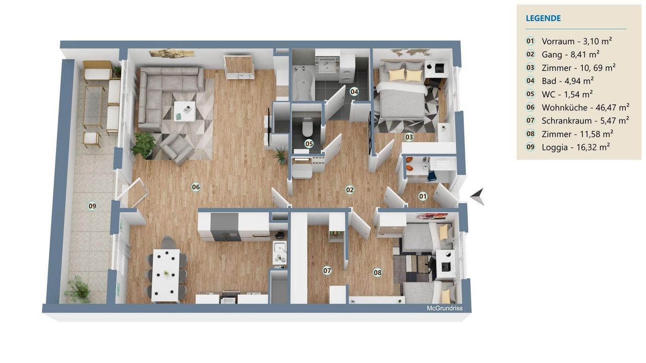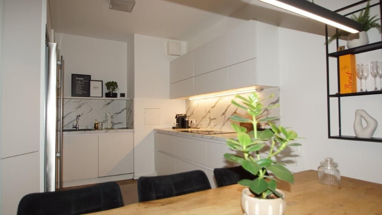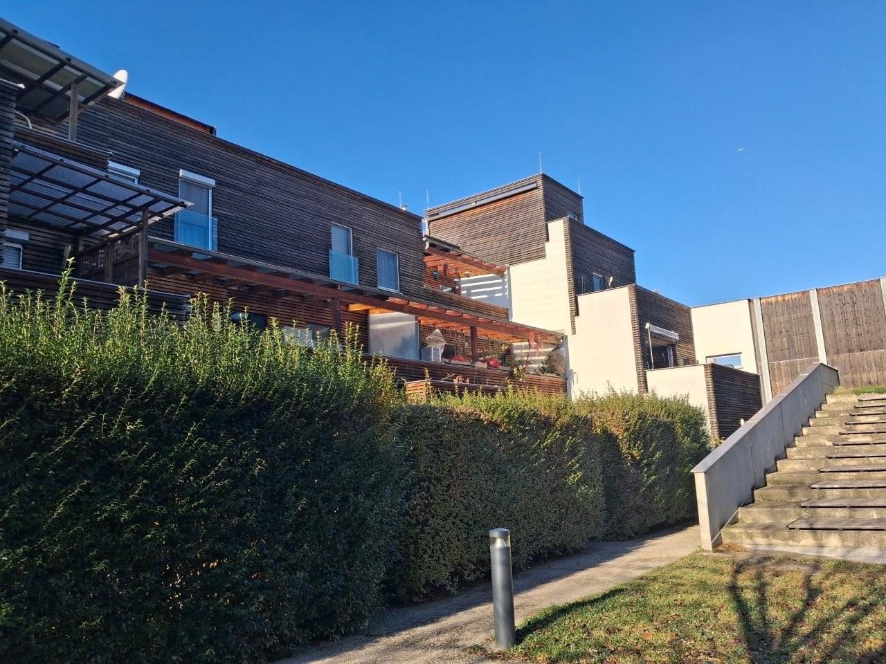 Die Wohnung steht nun zum Verkauf und ist nach Vereinbarung bezugsbereit. Vom westlichen Weg der Anlage gelangt man über einen Stiegenaufgang, der exklusiv nur zu dieser Wohnung führt, in den 1. Stock. Ein eigenes Gartentor sorgt für zusätzliche Sicherheit. Vom Eingangsbereich mit Garderobe betritt man einen stilvollen Vorraum, von dem aus alle Räume separat begehbar sind. Vorbei an einem eleganten Sideboard mit Bildergalerie sowie verspiegelten Kästen, die zusätzlichen Stauraum bieten, gelangt man in das helle und freundliche Wohnzimmer – das absolute Highlight der Wohnung. Die gemütliche Wohnlandschaft lädt zum Entspannen ein, und von hier aus hat man direkten Zugang zur herrlichen Terrasse. Diese ist teilweise überdacht und ermöglicht auch bei mäßigem Wetter angenehme Stunden im Freien.