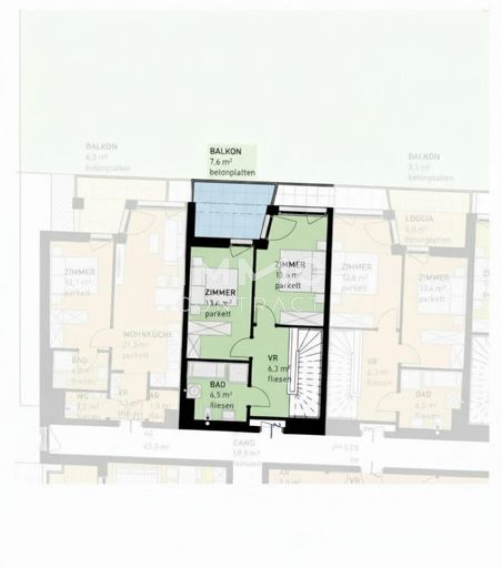 - Jede Wohnung mit privater Freifläche (Loggia, Balkon, Terrasse, Eigengarten)