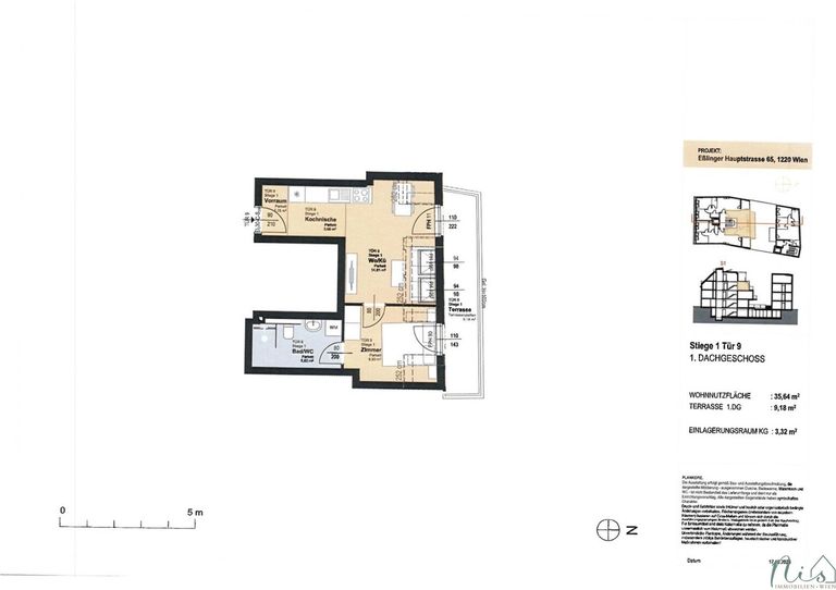 TOP 9 – 2 Zimmer -> Gesamtfläche ca. 44.82 m² - WNFL ca. 35.64 m² / Terrasse ca. 9.18 m²,