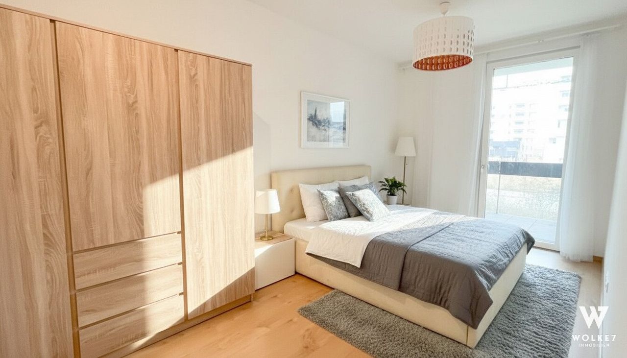 Die ca. 51 m² große Wohnung begeistert mit einer großzügigen Raumhöhe von ca. 2,80 m, lichtdurchfluteten Räumen und einer traumhaften Loggia mit ca. 5 m², inklusive Stromanschluss und Beleuchtung. Das moderne Heiz- und Kühlsystem mit Fußbodenheizung, Deckenheizung und Deckenkühlung sorgt das ganze Jahr über für ein angenehmes Raumklima, ergänzt durch eine automatische Feuchtigkeitsregelung mittels Hygrostatsteuerung. Ein besonderes Highlight der Wohnanlage sind der hauseigene Fitnessraum sowie die Sauna, die echtes Premium-Wohnen ermöglichen. Umgeben von großzügigen Grünflächen genießen Sie hier Ruhe und Erholung und das bei perfekter U-Bahn-Anbindung in Stadtnähe.