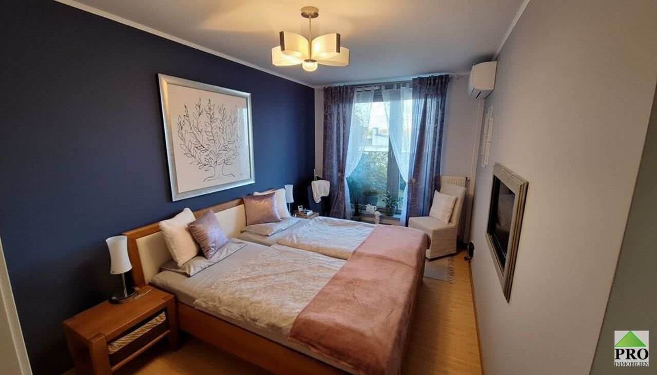 Die großzügigen Verglasungen sorgen für helle, sonnige und Lichtdurchflutete Räume. Die Wohnung