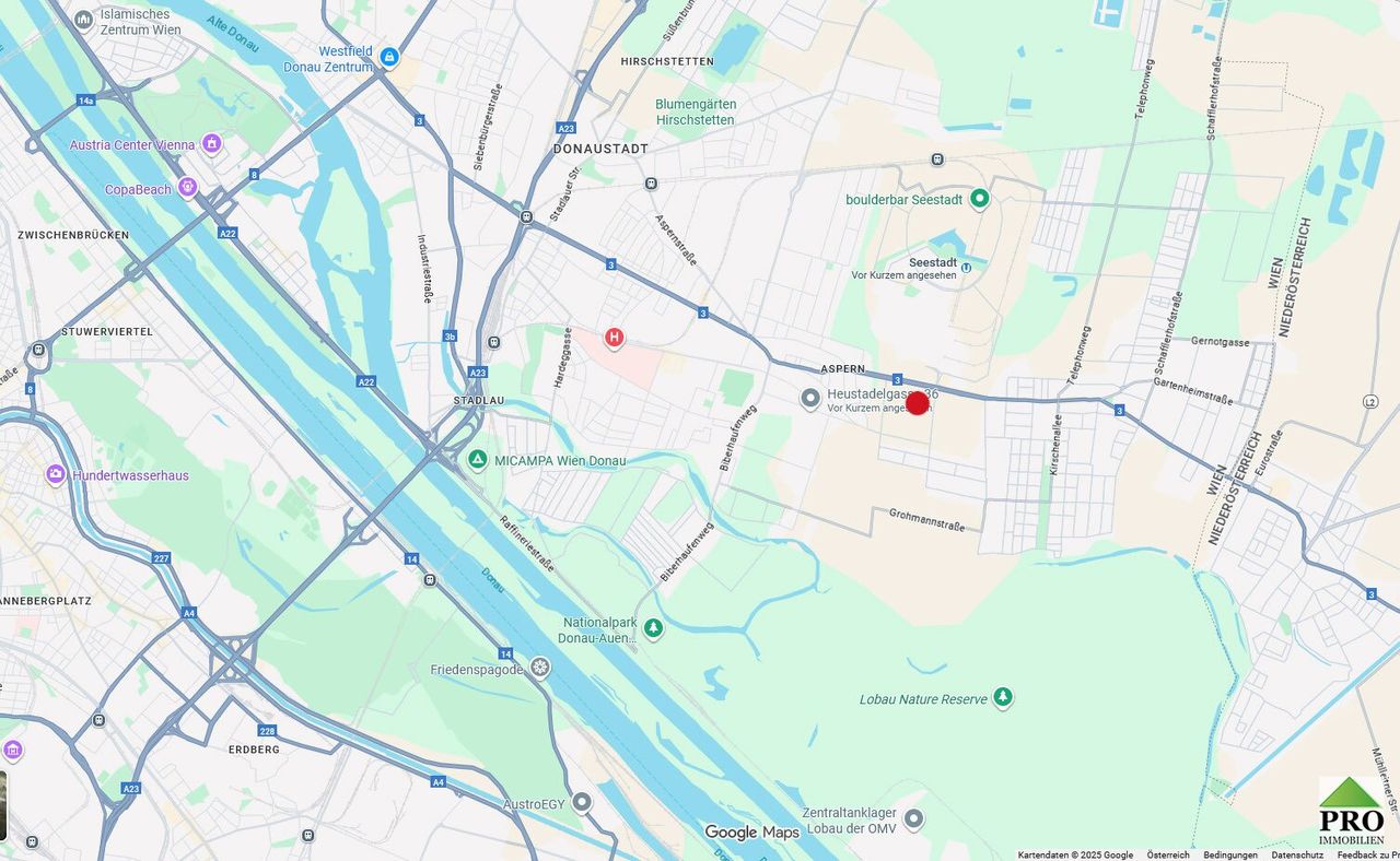 Die Wohnung liegt in Aspern, ein Teil des 22. Wiener Gemeindebezirkes, nahe dem Erholungsgebiet Nationalpark Donauauen und dem Mühlwasser. Ideal für sportlich aktive, aber auch Erholungs- Suchende.