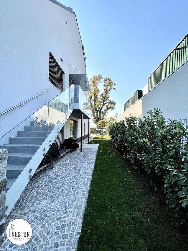 Mit großem Stolz präsentieren wir Ihnen die Luxus-Gartenwohnung mit atemberaubendem Ausblick über die alte Donau und die Skyline Wiens: