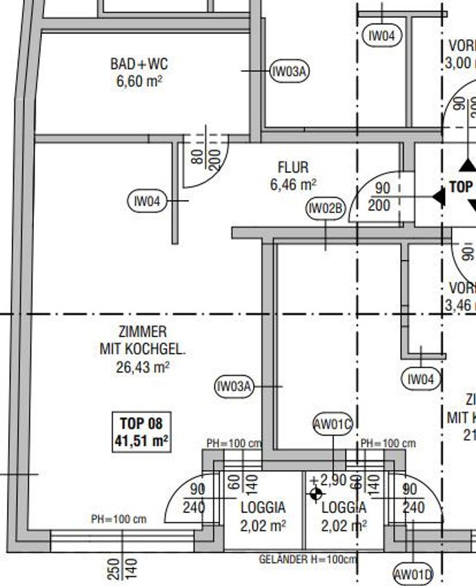 Ca. 39,49 m² Wohnfläche plus Loggia (ca. 2,02 m²).