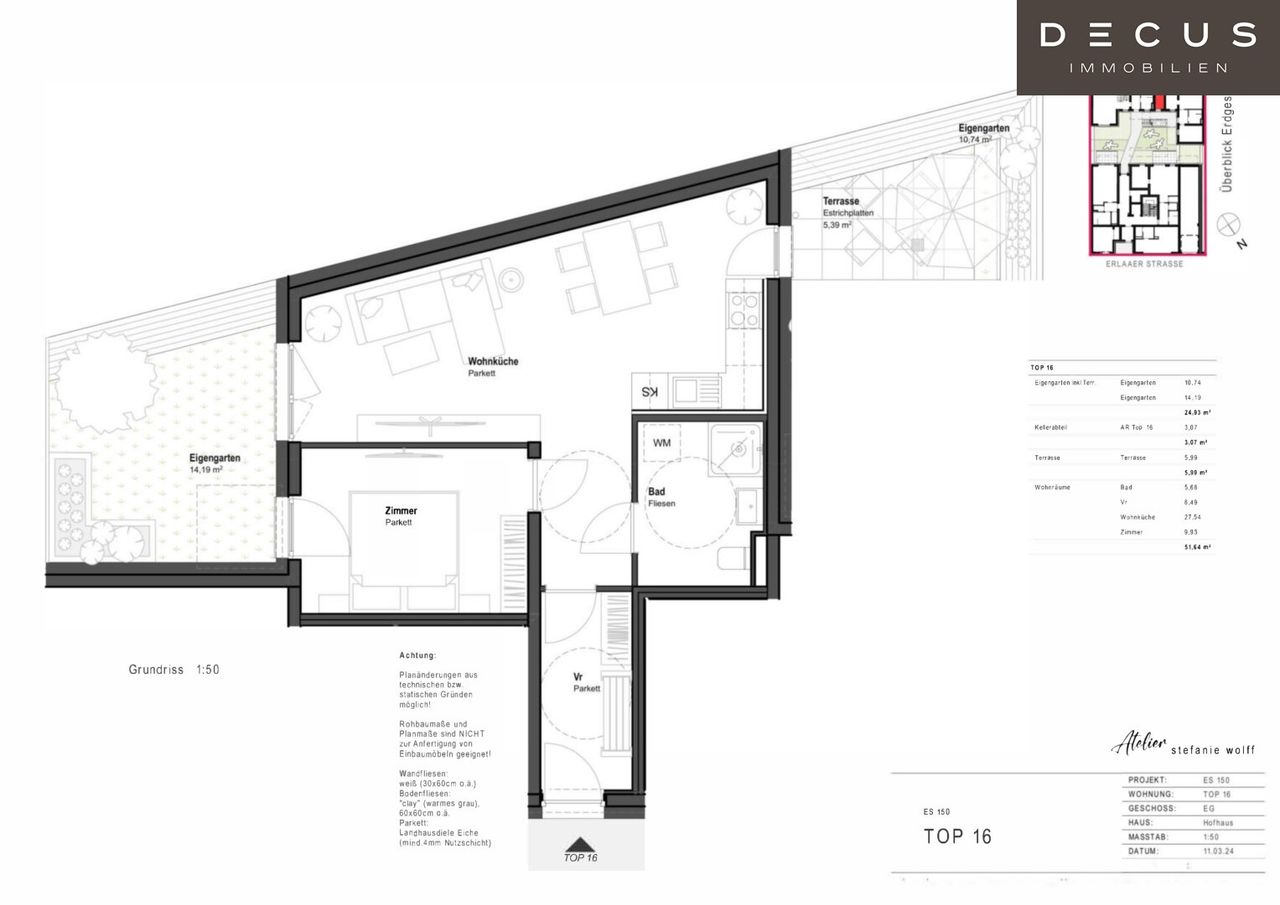 Auf das wirtschaftliche Naheverhältnis zur Verkäuferin wird hingewiesen. Abweichungen von den Plänen und Änderungen sind vorbehalten! Die gezeigten Fotos sind mit KI-Software bearbeitet, und stammen von den beiden Musterwohnungen in diesem Haus. Bitte orientieren Sie sich zunächst am Plan.